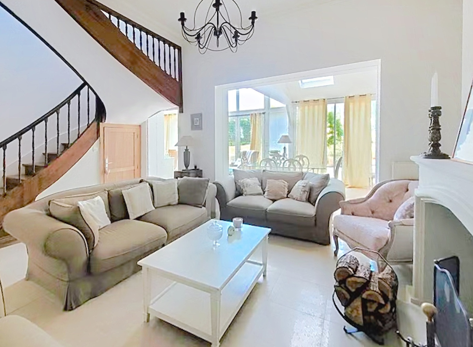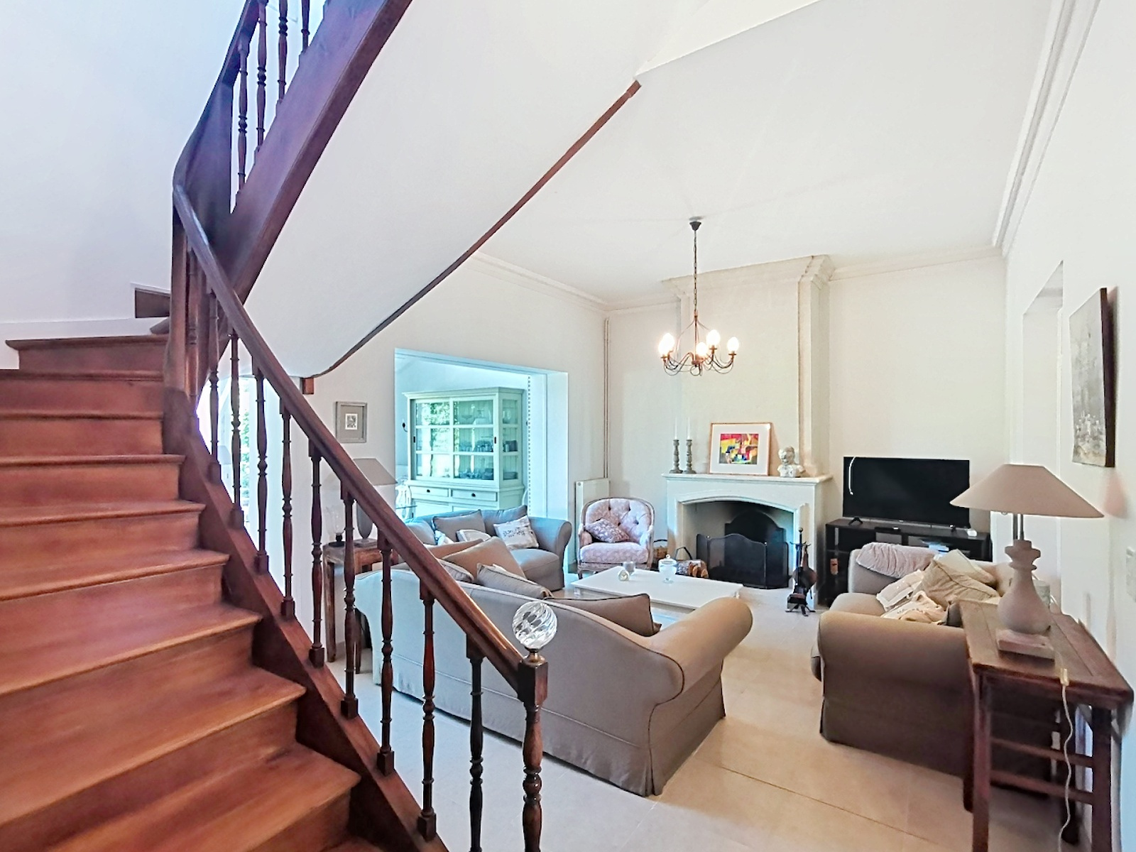 Dégagement vers Salon 21 m2 (cheminée tuffeau) ouvert sur Séjour 33 m2 avec plafond "cathédrale" (baies vitrées donnant sur la terrasse et le jardin)