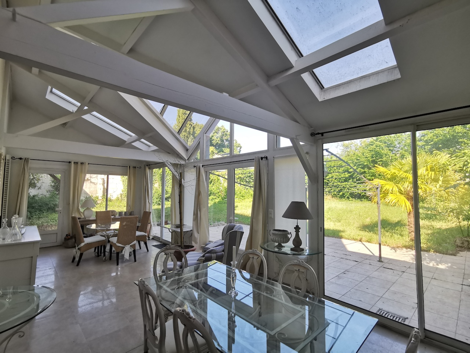 La pièce principale donnant sur la terrasse et le jardin bénéficie d'une luminosité exceptionnelle grace à son extension en toit "cathédrale" et ses baies vitrées.