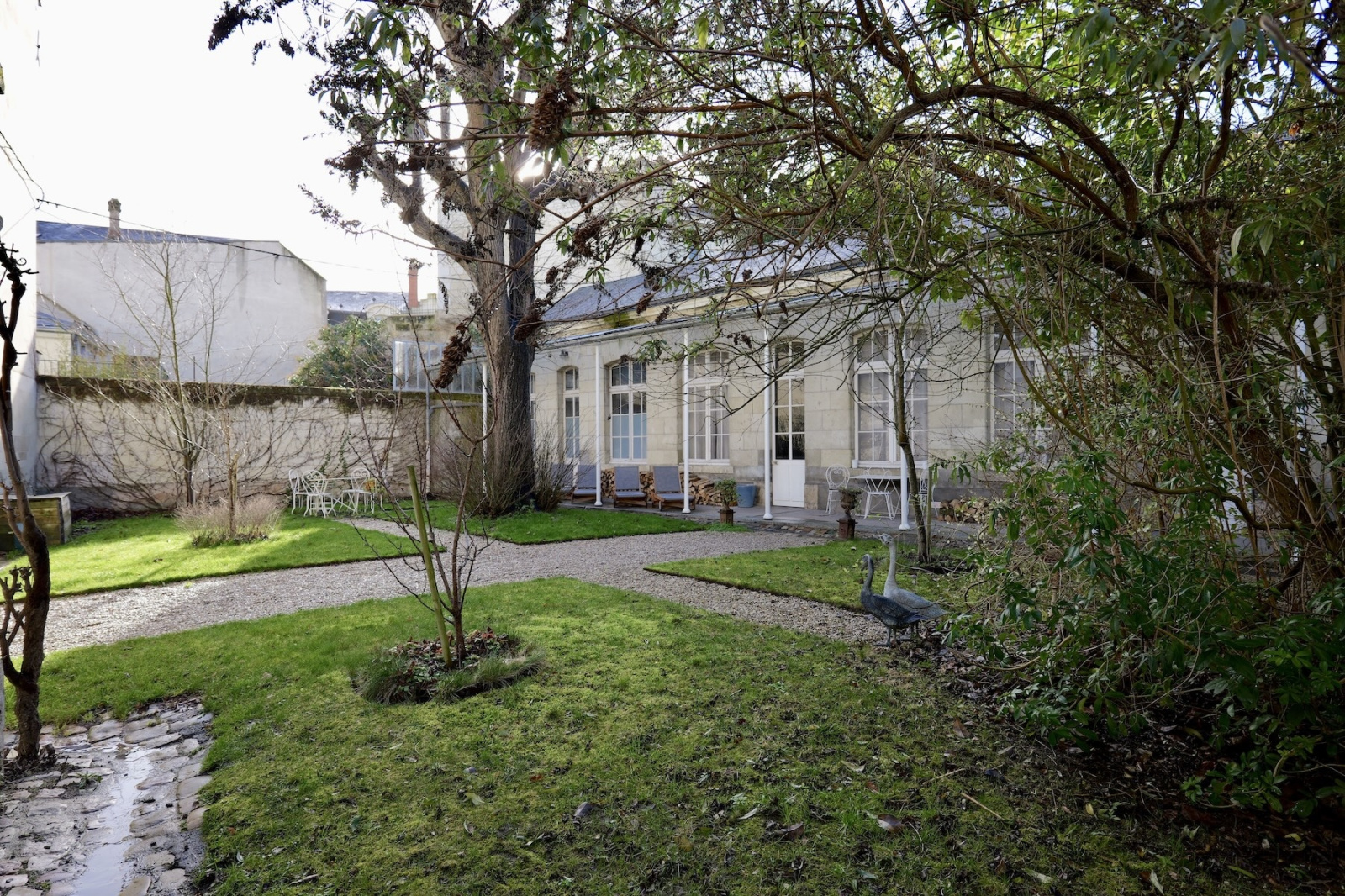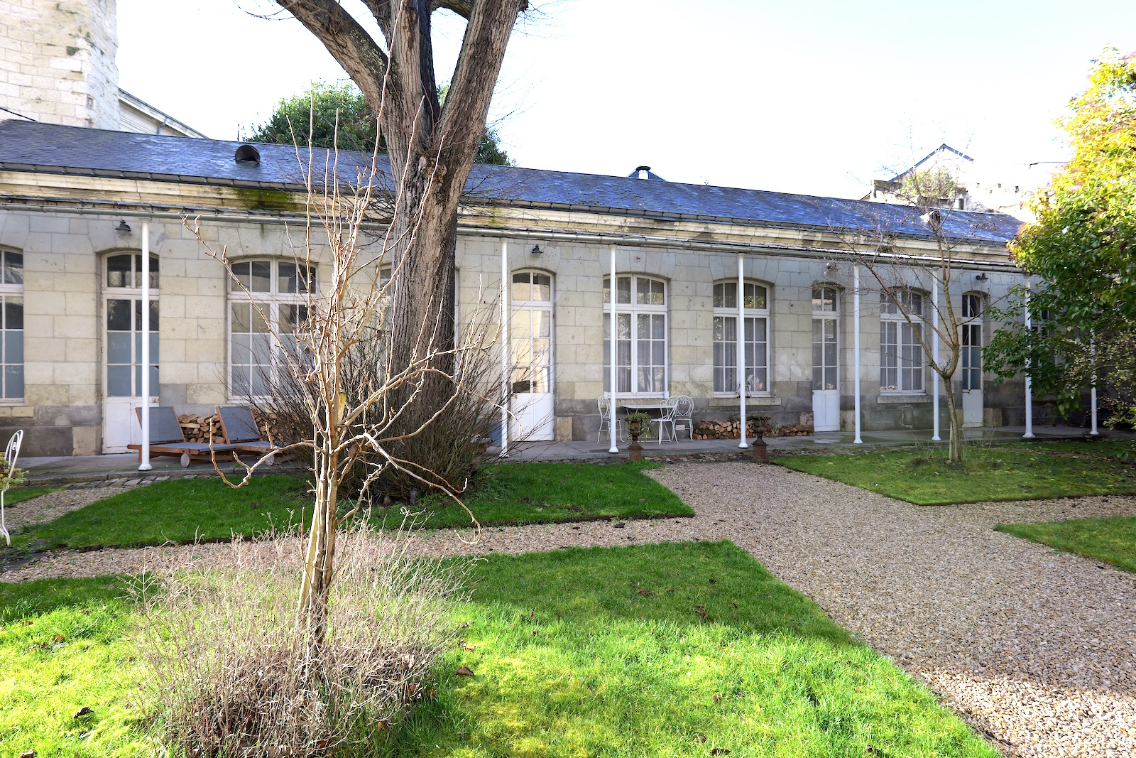 Maison de maitre revisitée bâtie au 15e siècle au cœur de la ville de Saumur que prolonge un jardin secret où trône un platane séculaire, la petite rue calme qui lui sert d’adresse conduit aux boutiques, commerces, restaurants et théâtre.