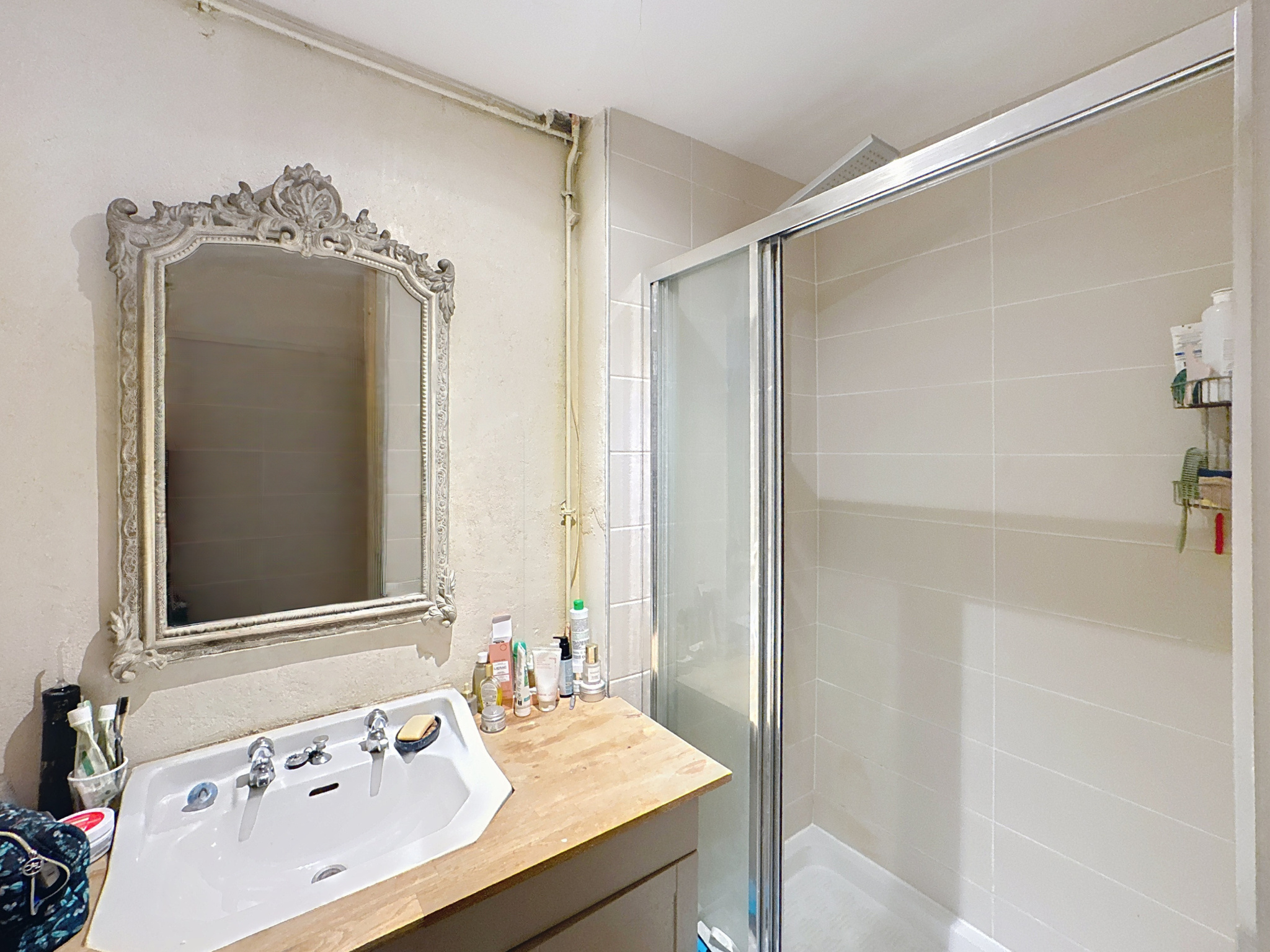 Dégagement avec salle d’eau (douche, lavabo) et WC