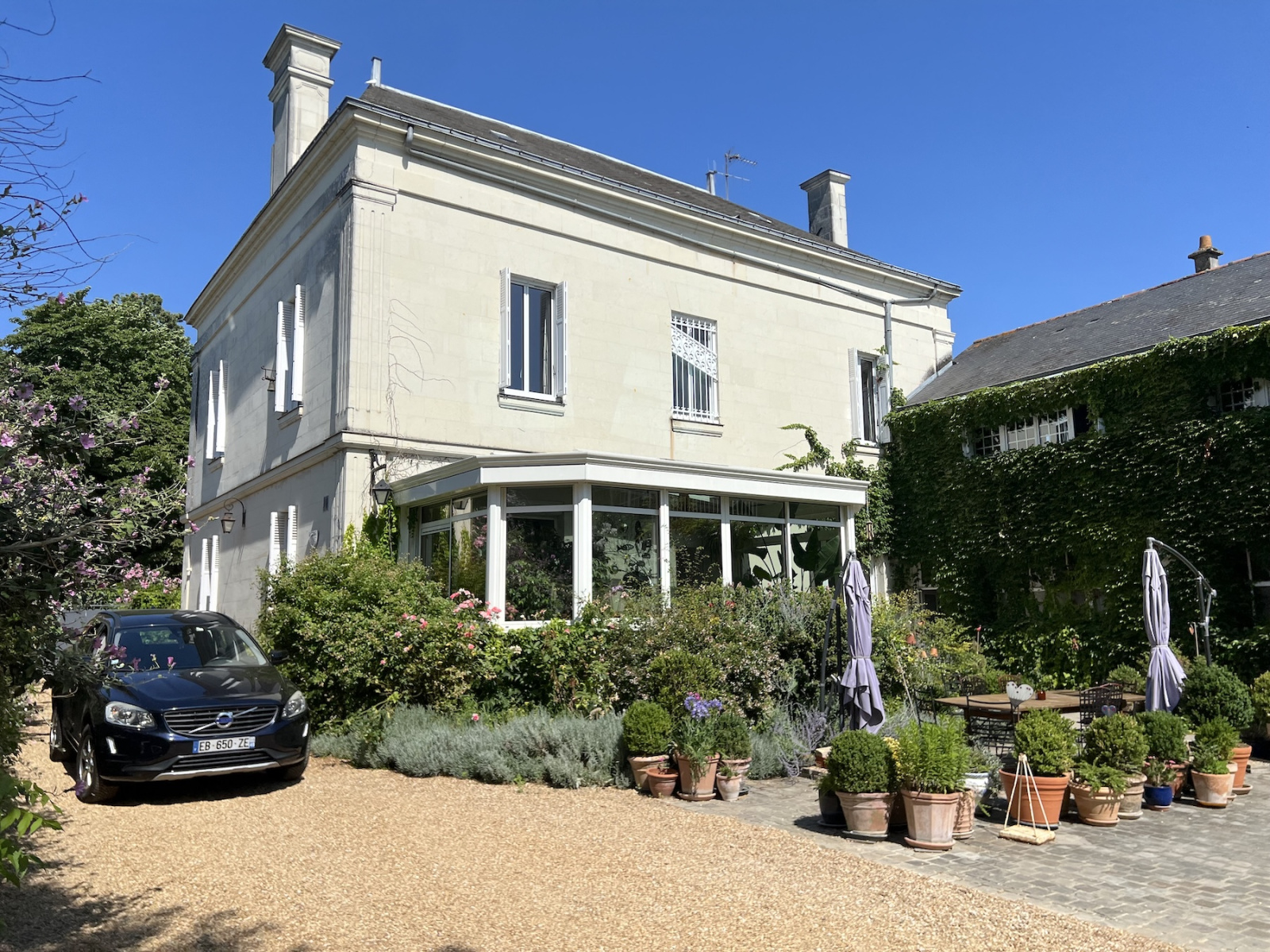 Maison de maitre en tuffeau proche de Saumur et son joli parc clos de murs sur 5.000 m2 planté de cèdre, magnolia, hêtres, pins, saule, fruitiers, avec une piscine.