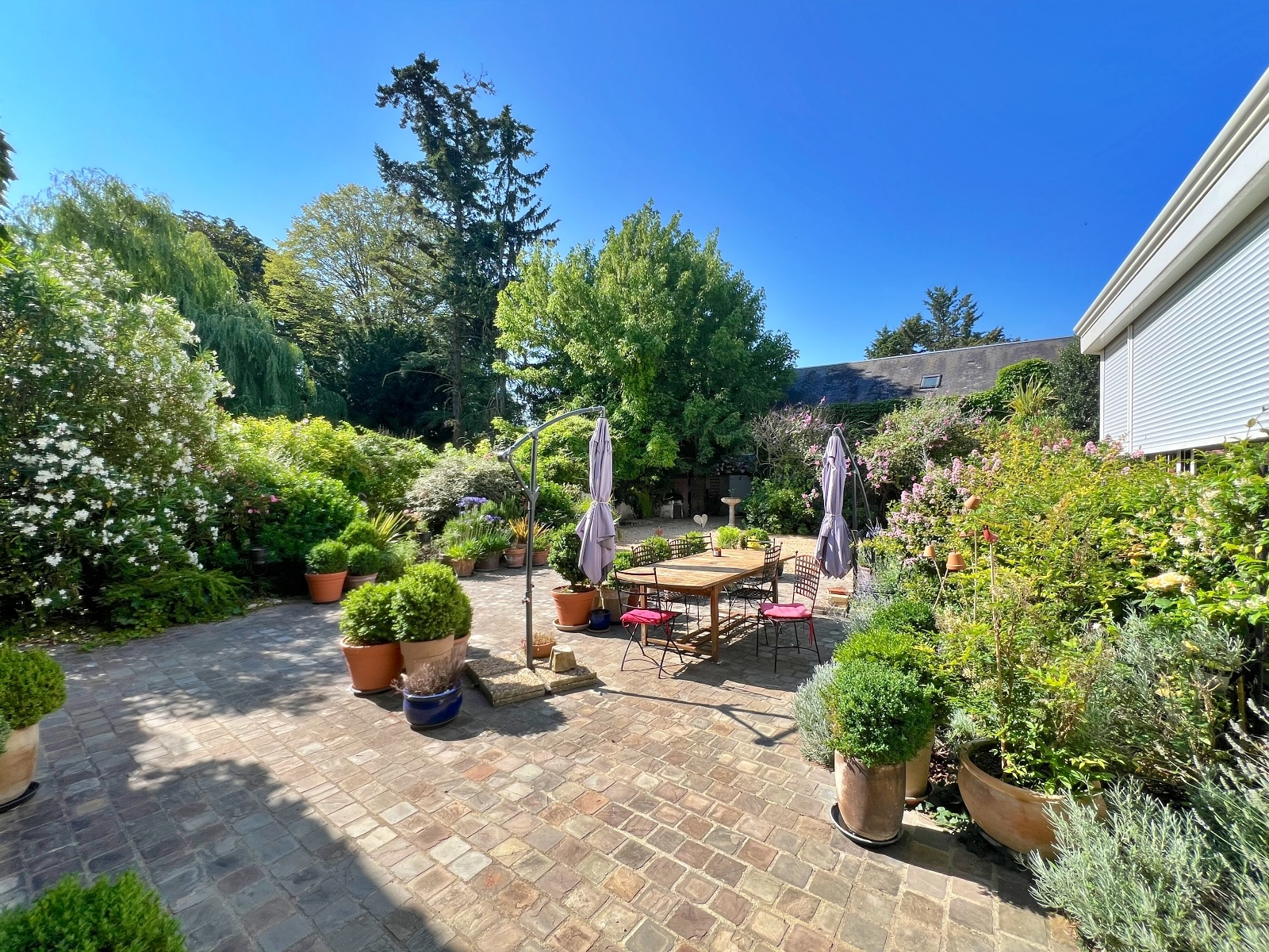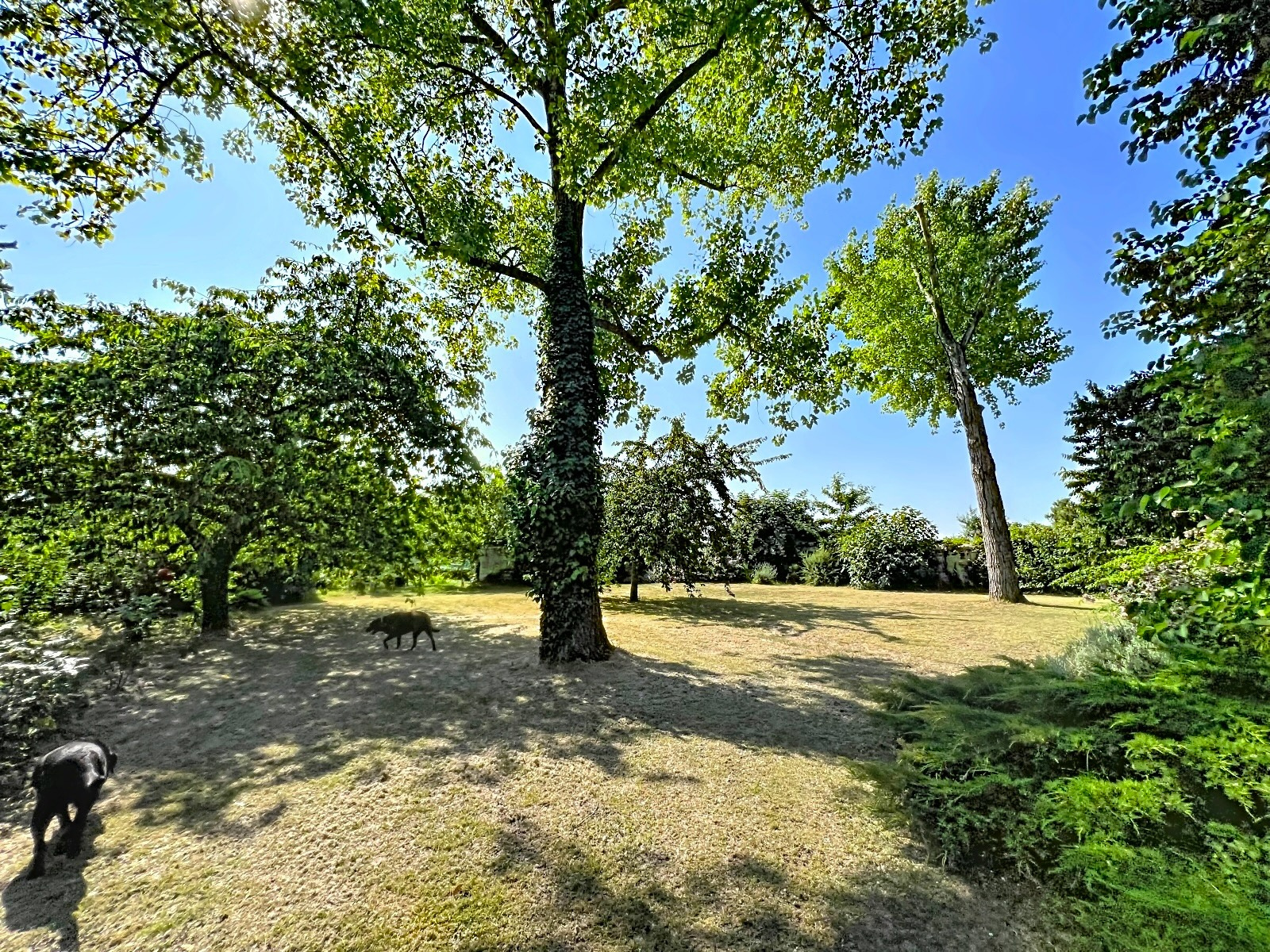 Très joli parc à l'arrière avec des zones ombragées et des parties découvertes, allée de rosiers, petite pièce d'eau avec saule, grand potager avec nombreux fruitiers