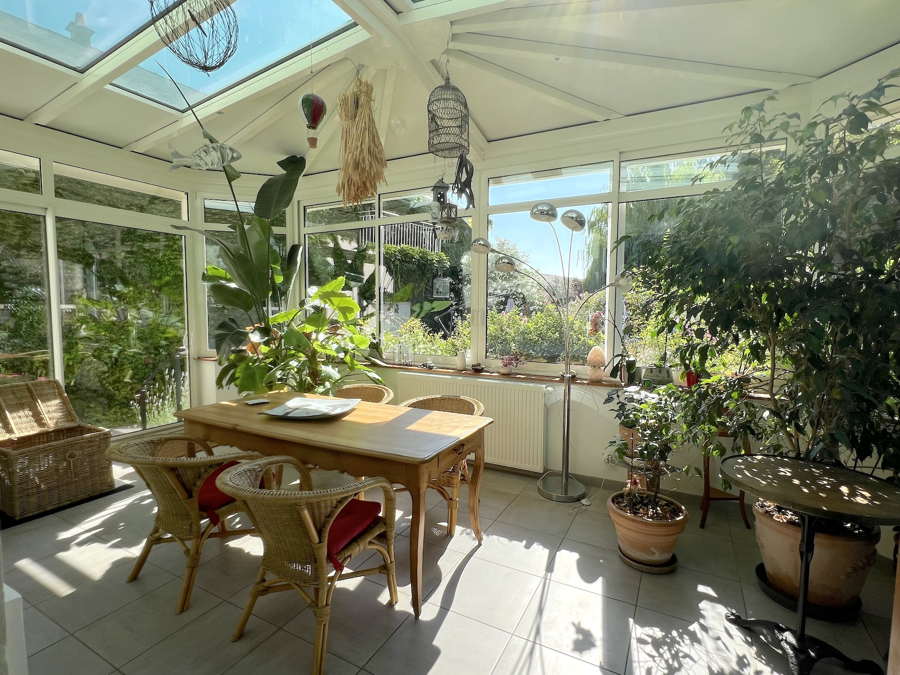 Entièrement restaurée en 2020, la demeure possède une marquise qui coiffe le perron d'entrée et lui apporte une touche d'élégance qui ne vous laissera certainement pas indifférent…Les pièces spacieuses illuminées d'une décoration ou le blanc domine dès l'entrée qui traverse la maison et dessert un double salon de 53 m2 avec sa cheminée, une salle à manger d’angle, une cuisine de magazine qui se prolonge sur une véranda, un bureau et 4 chambres.