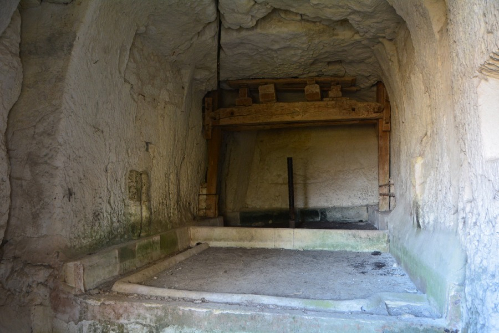 4 entrées de caves voutées et un ancien habitat troglo de 3 pièces dont une avec cheminée.
