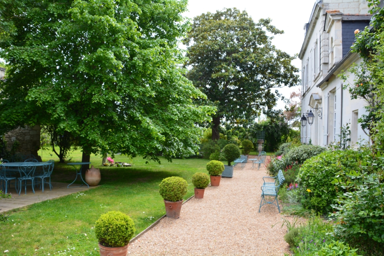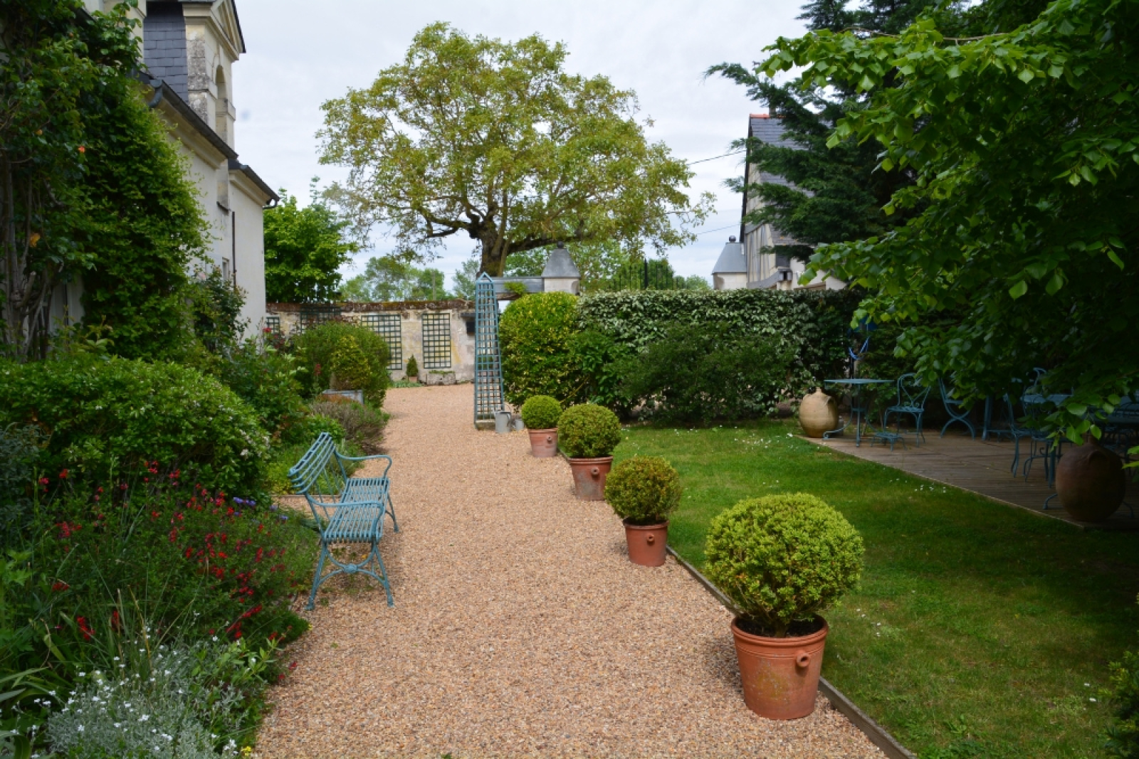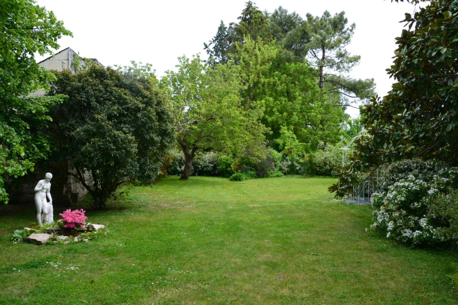 Le jardin de 1664 m2 profite de nombreux massifs et plantations décoratives ainsi que d'arbres centenaires (tilleul, magnolia, abricotier).
