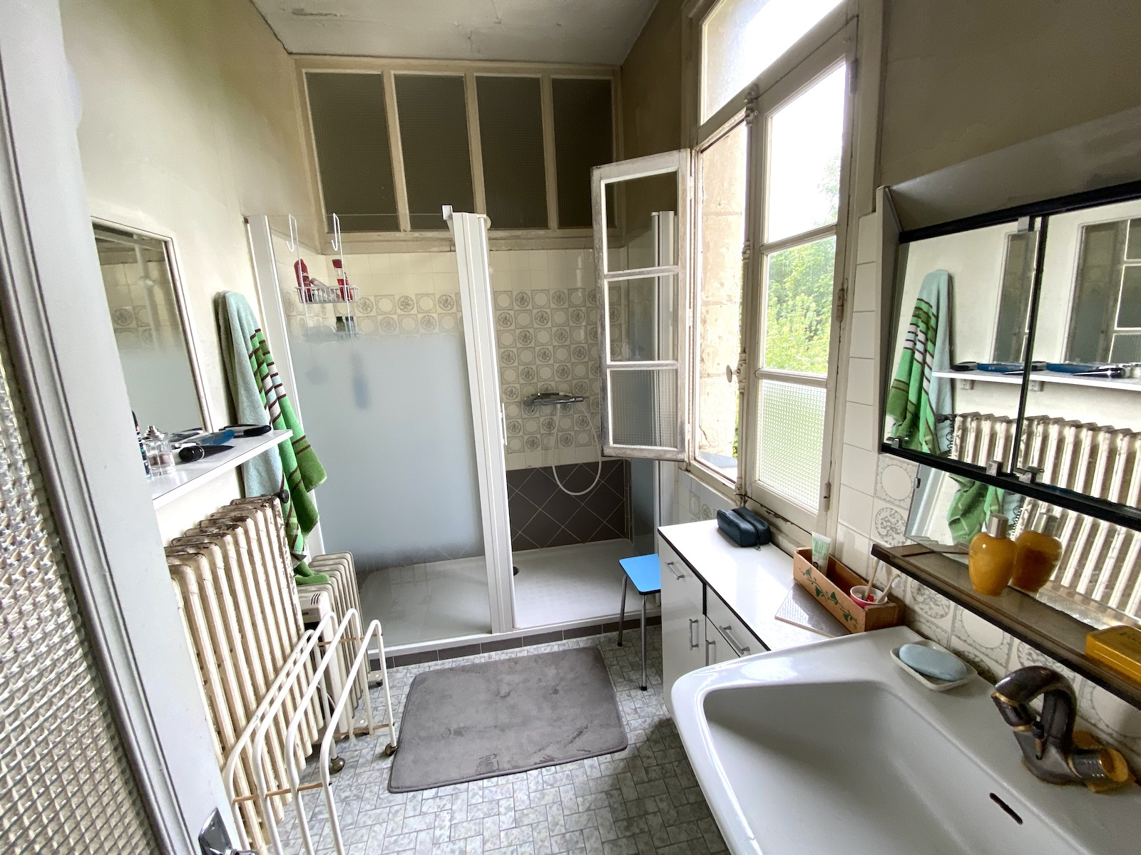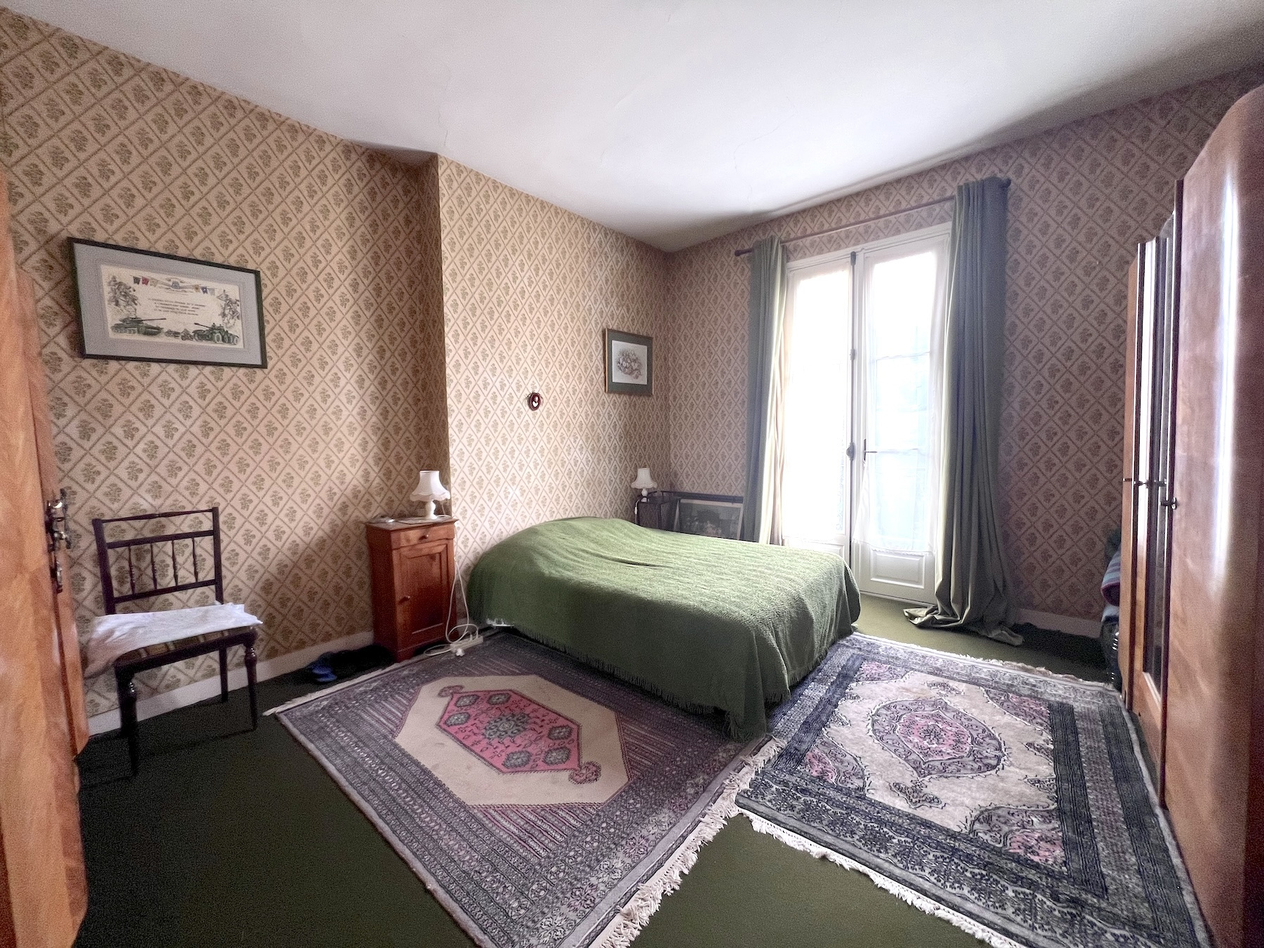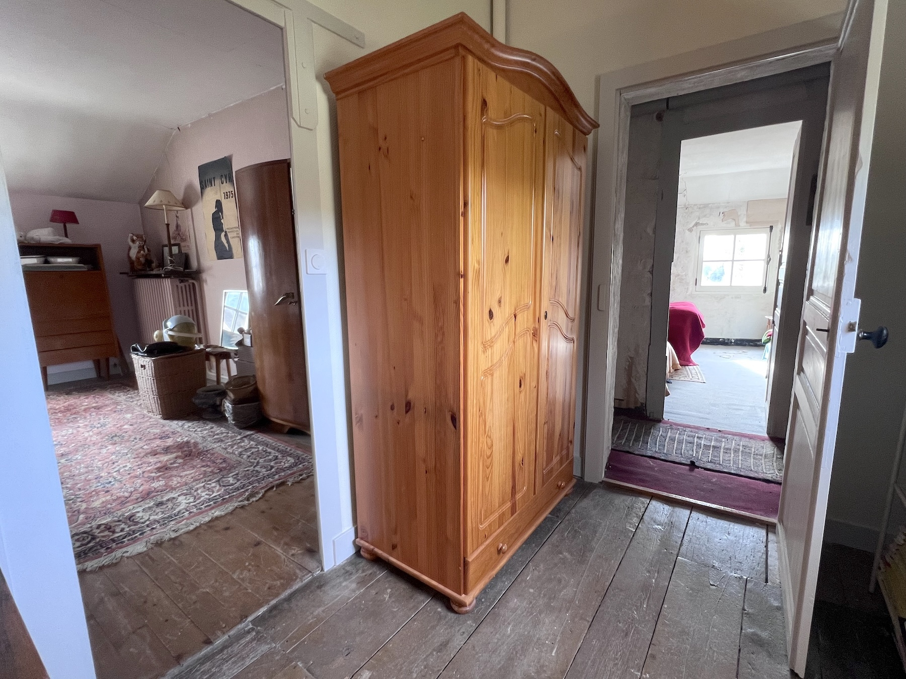 L’entrée principale en façade sud, dessert au rez-de-chaussée un salon d’angle sur parquet, un bureau, une salle à manger et une cuisine. Au 1er étage ce sont 3 belles chambres et une salle d’eau et au second une 4e chambre qui forment le potentiel de l’habitation, que les deux mansardes et le grand grenier pourront compléter.