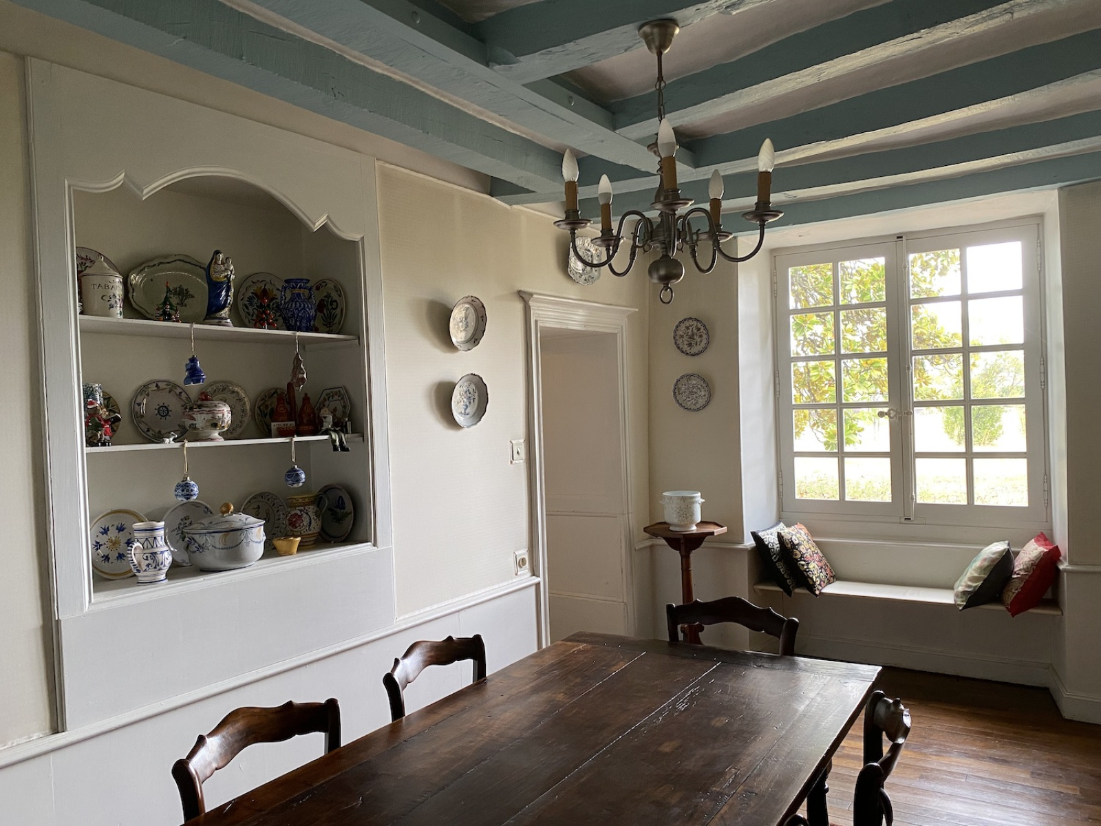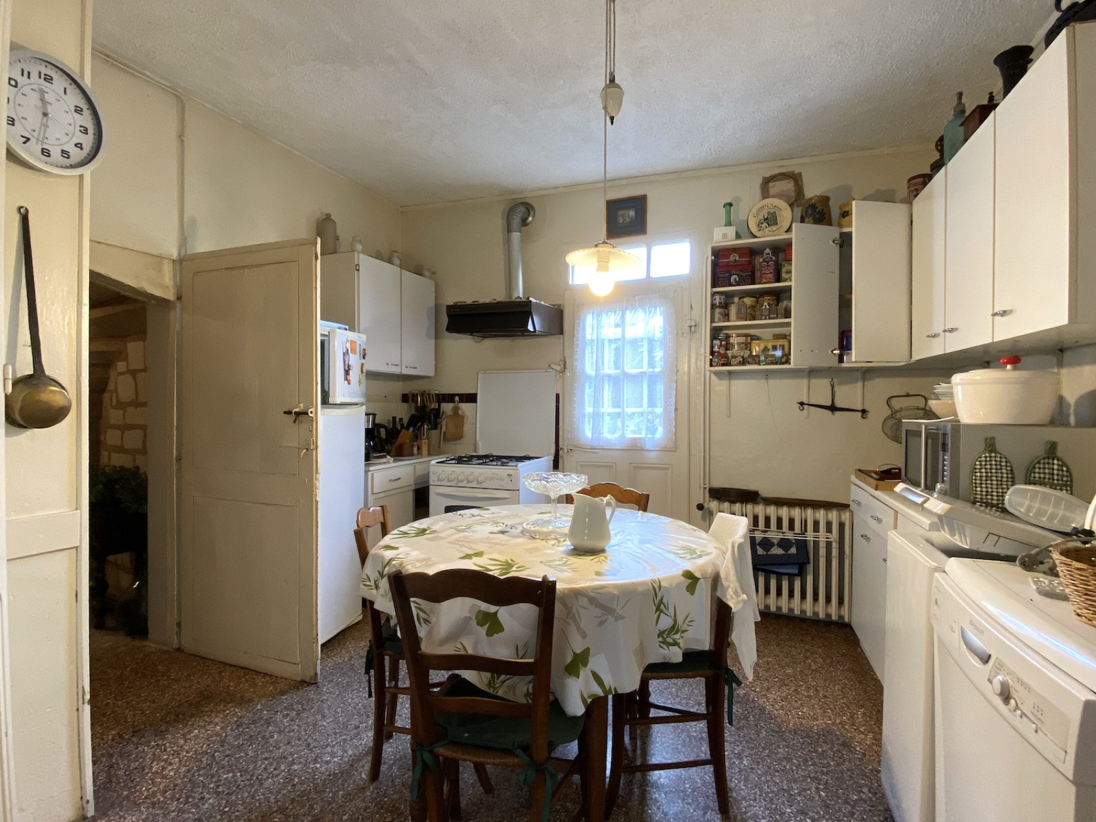 L'habitation se décline actuellement en 2 parties la première sur environ 150 m2 avec un salon de 30 m2, une salle à manger, une cuisine et 3 chambres, à laquelle succède la seconde partie composée d'une pièce en rez-de-chaussée et une autre à l'étage, le tout couvert de beaux greniers.