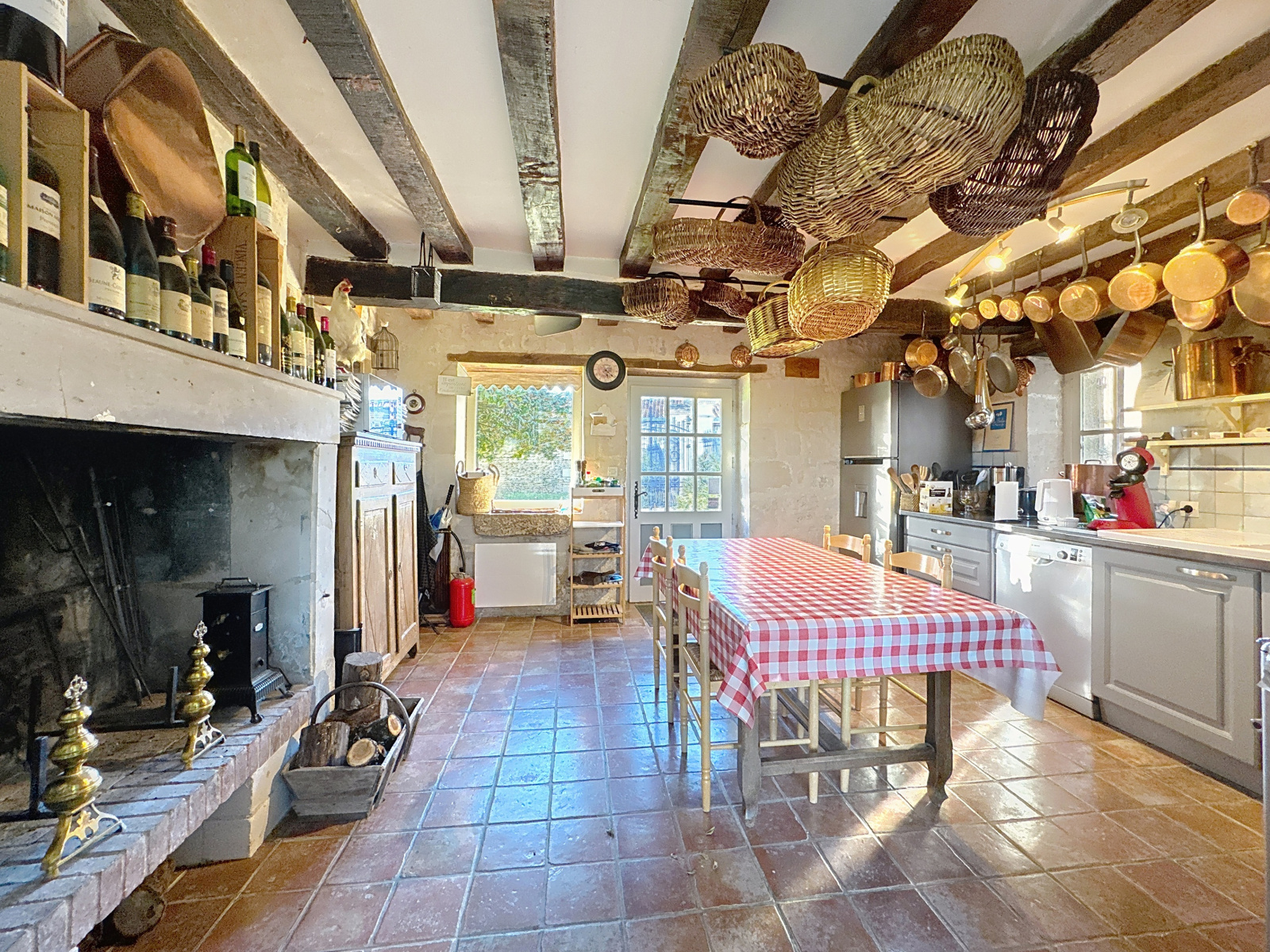 Cuisine et salle à manger 29 m2 (cheminée, pierre d’évier, escalier n°2),