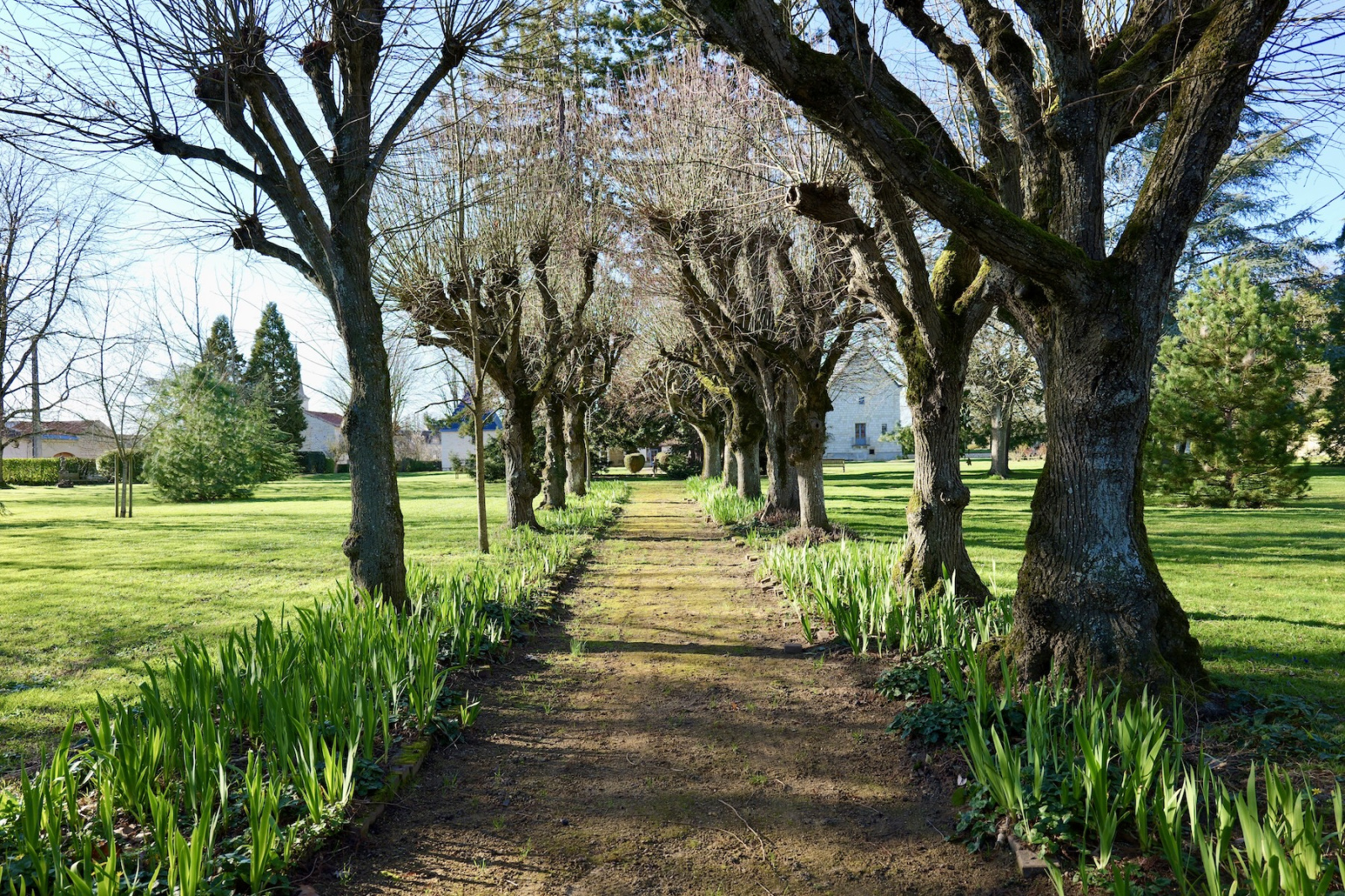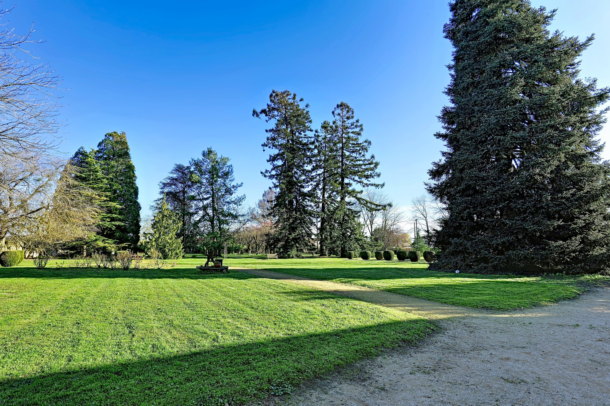 Parc à l’anglaise d’environ 1 hectare (Séquoia, Cèdre, Tilleul, Chêne rouge, Liquidambar, Érable argenté, Tulipier de Virginie, Platane, Marronnier rose et Marronnier blanc, Ginkgo, Charme, Saule blanc, Châtaignier, Olivier, Hêtre…)