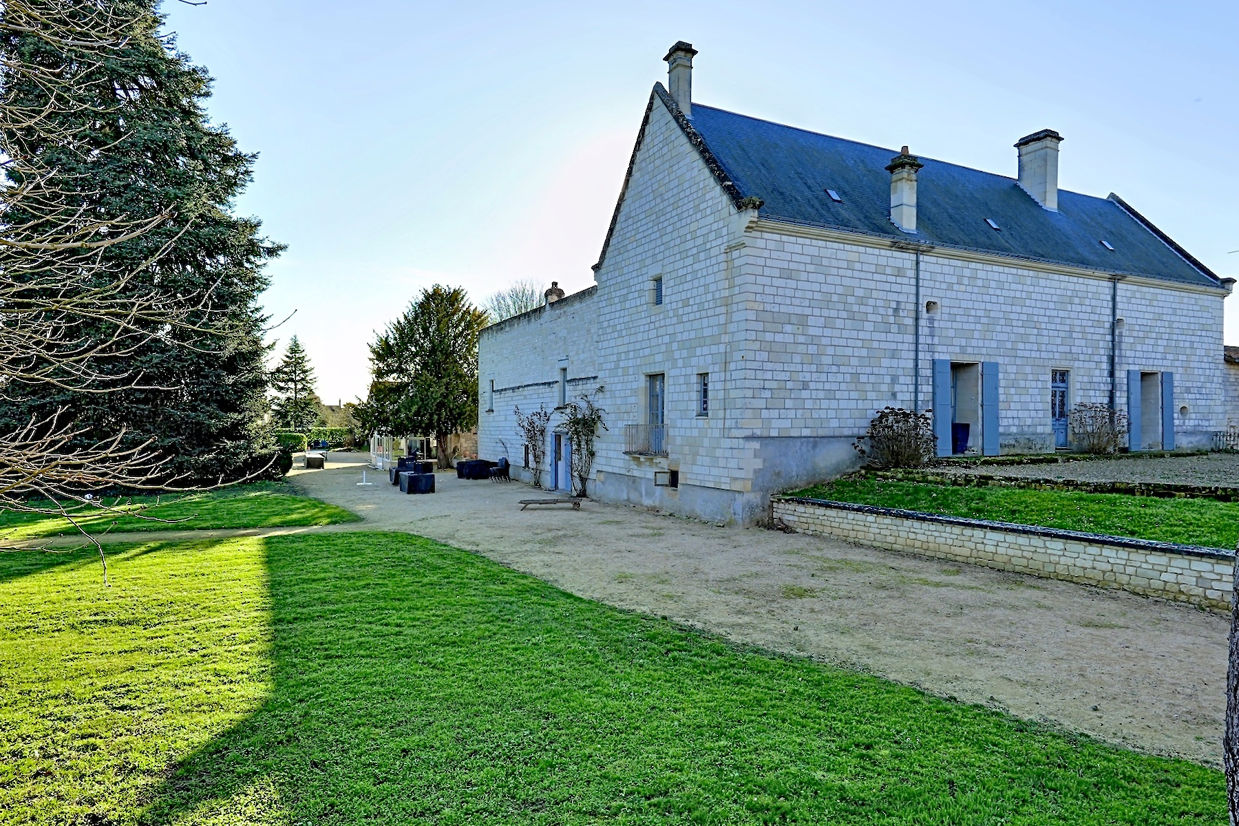 Le manoir avec sa jolie façade en pierre de tuffeau se situe au fond d'une double cour d'entrée ombragée par de vieux marronniers et fermée par ses 2 communs en pierre, soit une capacité de 15 pièces dont 9 chambres pour ce lieu dédié à l'hébergement touristique qui lui procure une activité à part entière.