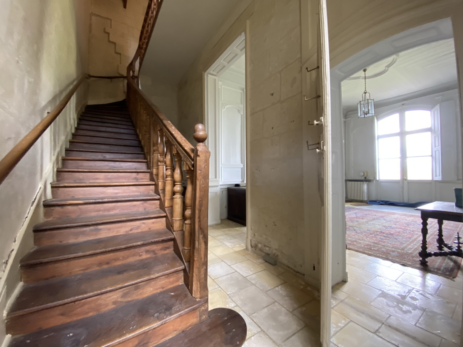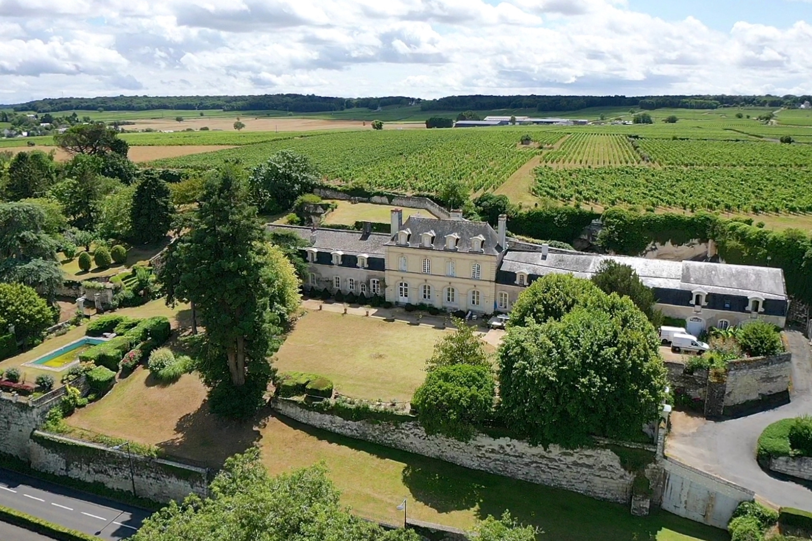 Élégant manoir 17e - 18e siècles près de Saumur et de la Loire construit sur un promontoire en nid-d’aigle, la propriété étend sa longue façade construite en pierres blanches de tuffeau au centre de laquelle s’élève la maison de maitre sur un étage et mansardes.