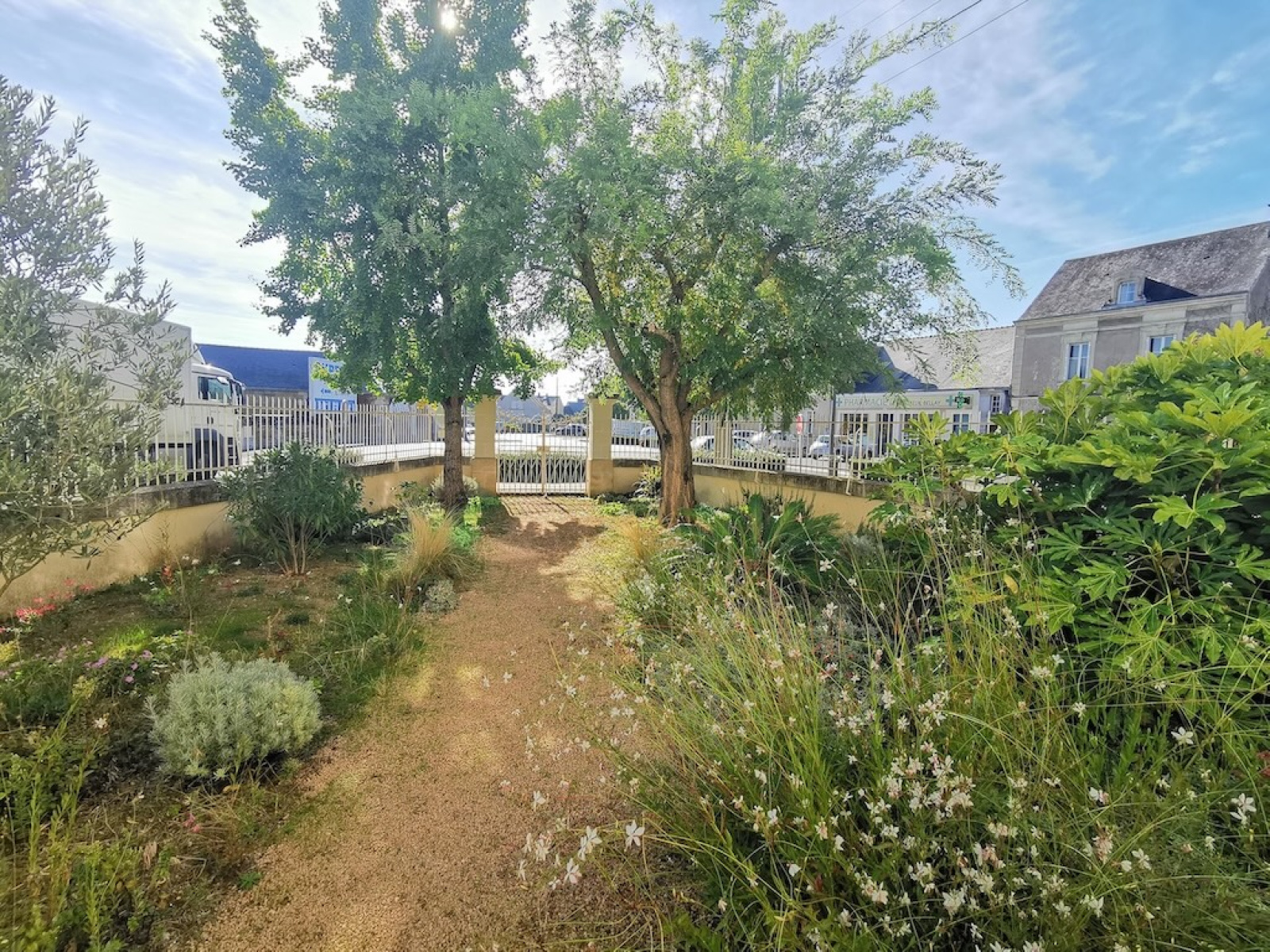 On y accède par une grille d'entrée donnant sur un angle de rues
