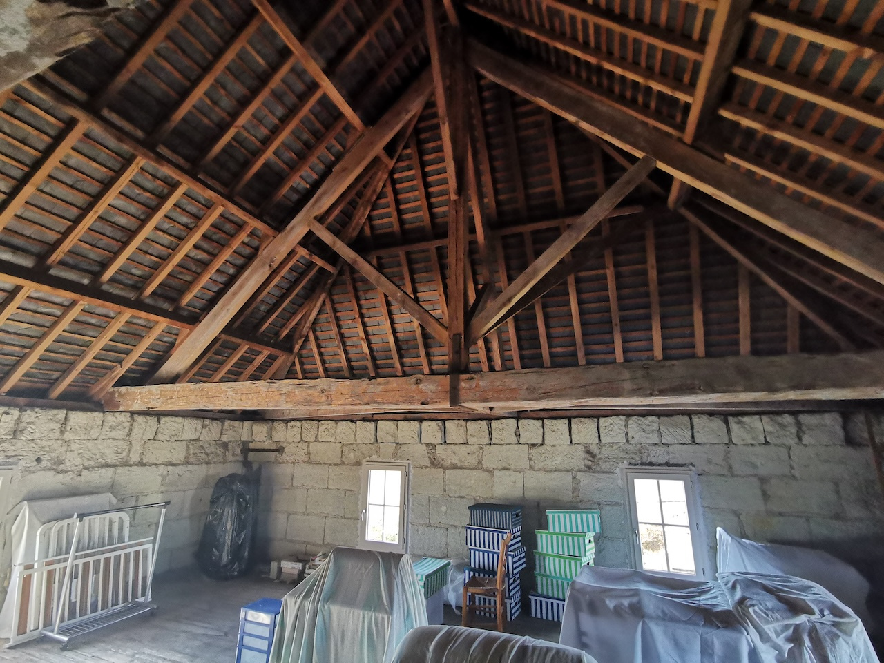Au dernier niveau, un grenier 13,50 X 8,30m (charpente apparente - fenetres double vitrage - hauteur sous faitage 5,75m) offrant un beau potentiel d'aménagement et/ou de stockage.