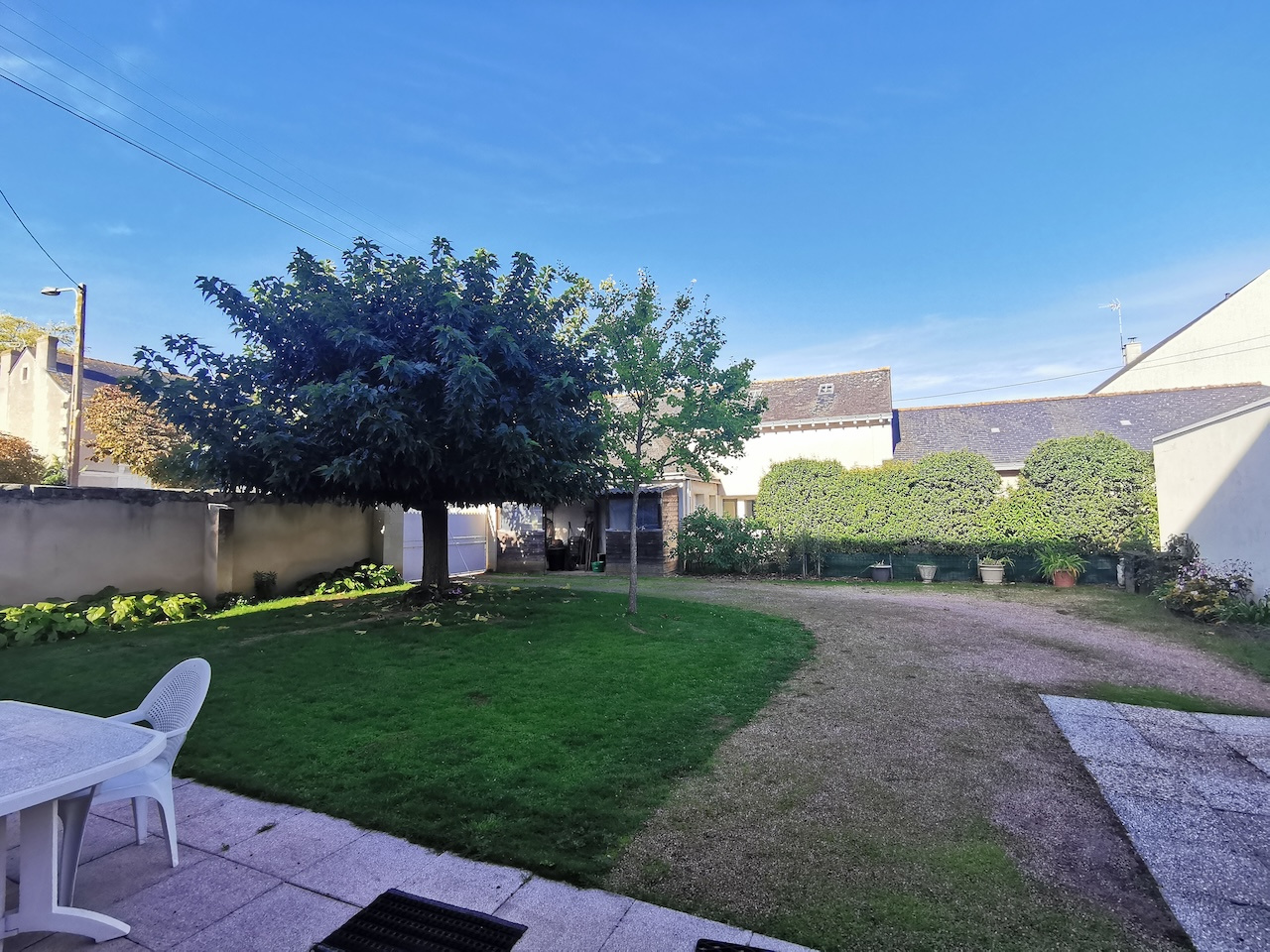 Cour arborée à l'avant, cour-jardin sur l'arrière, l'ensemble clos sur 610 m2 (superficie cadastre)