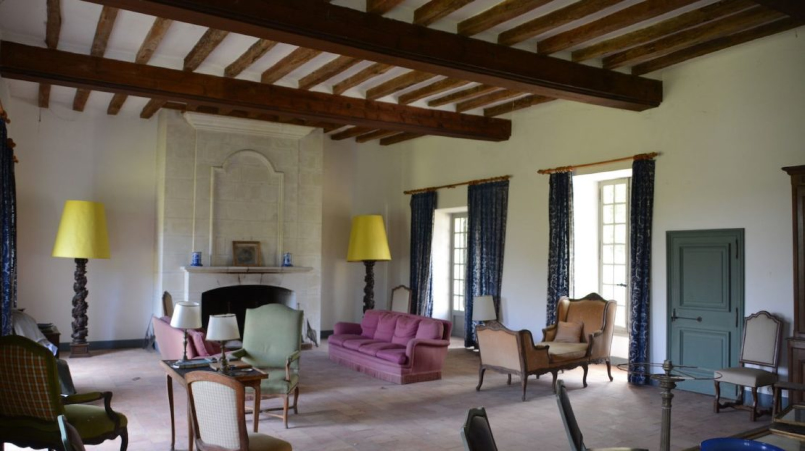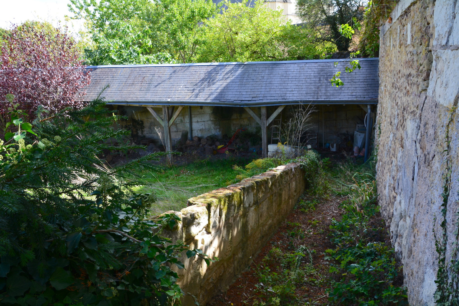 Le portail qui s'ouvre sur la cour d'entrée est aussi un rempart pour rester au secret…, tandis qu'à l'arrière le jardin est en terrasse sur le village et laisse une très jolie vue sur la campagne et sur la grande abbatiale où reposent les gisants de Richard 1er d'Angleterre dit Coeur de Lion et celui de sa mère, Aliénor d'Aquitaine