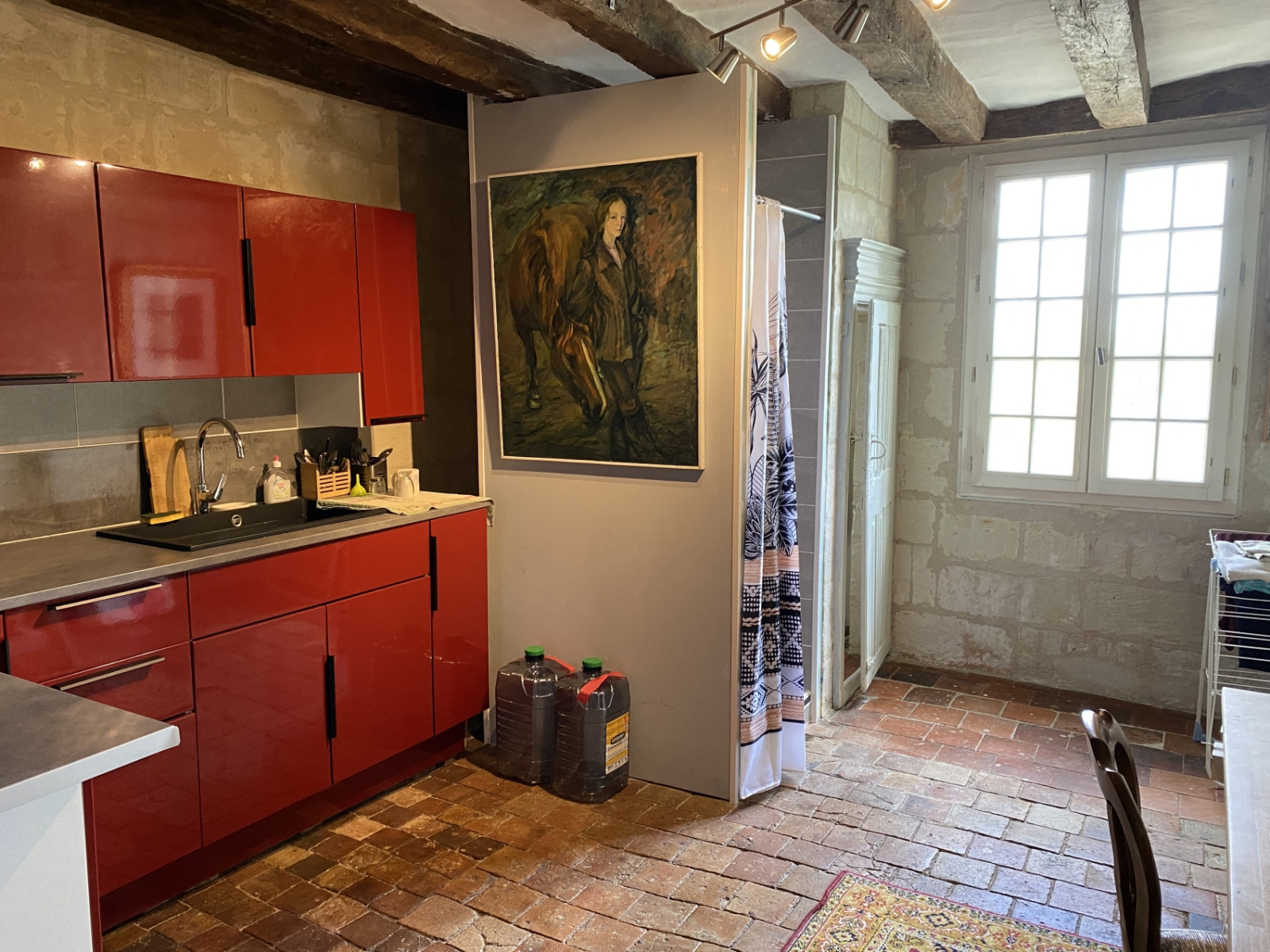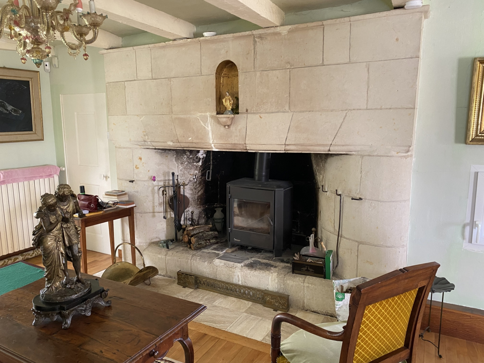 Au premier étage, une chambre de 40 m2 avec cheminée monumentale XVe, un séjour de 19 m2 et une salle d'eau,