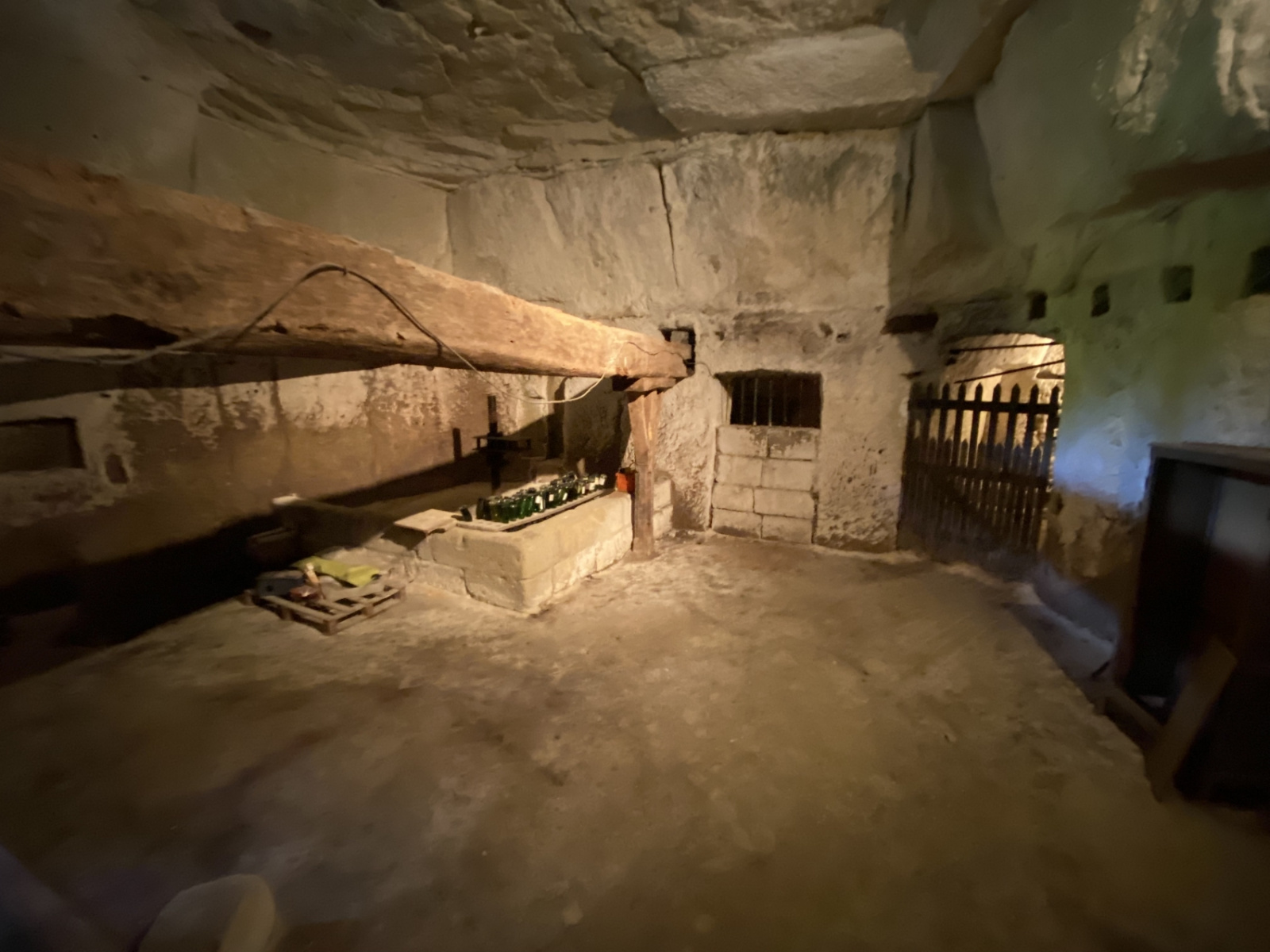Rez-de-chaussée sur rue accédant à de magnifiques caves, une remise utilisée en chaufferie (chaudière fioul à condensation), et d'un passage permettant de rejoindre une cave de 11m x 7,50m avec une hauteur de 4 m, un ancien pressoir de 6m x 7m avec un four à pain, et une cour intérieure.