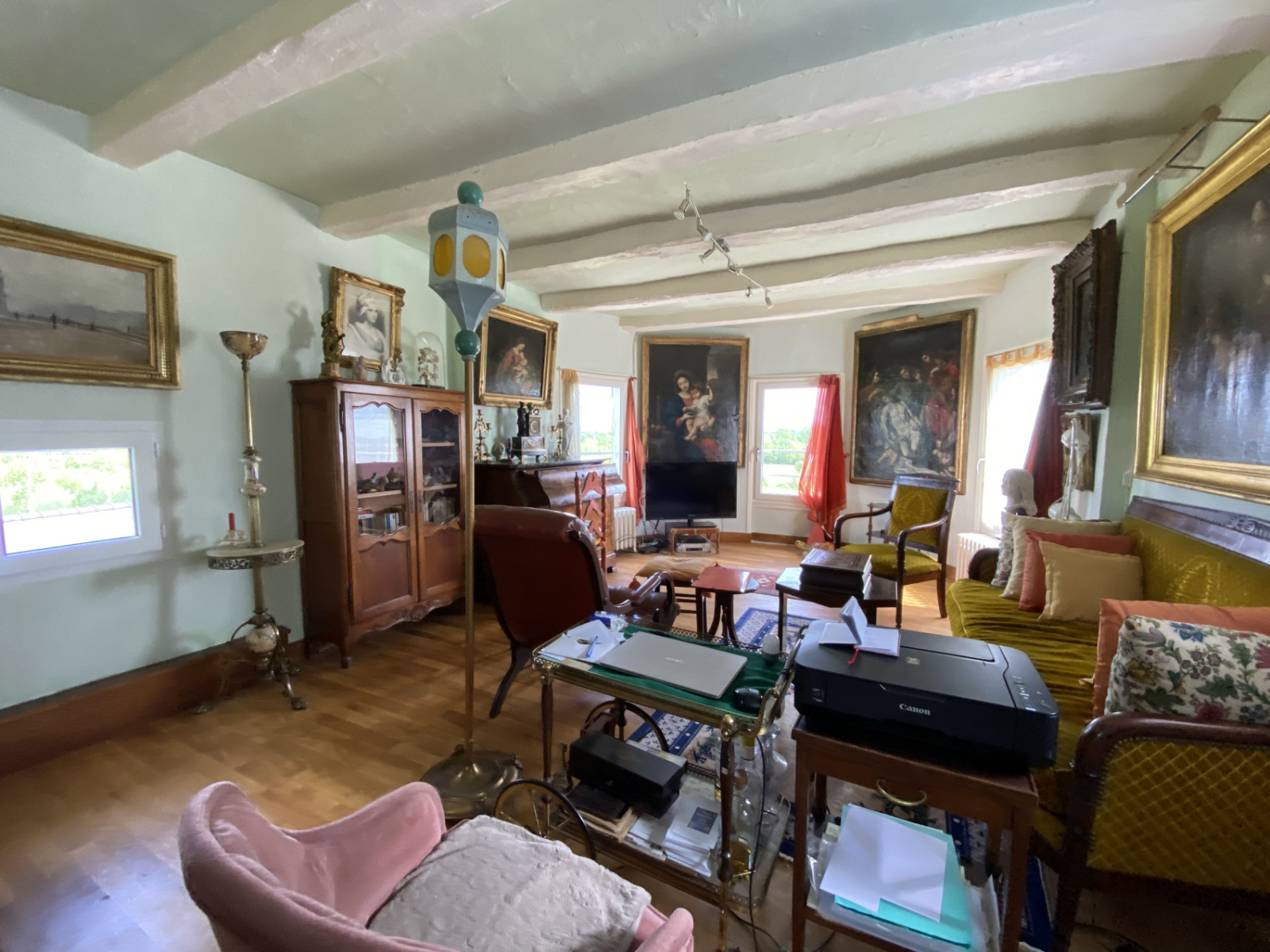 Composée de 6 pièces et pleine d'originalité, elle dispose de plusieurs grandes cheminées, de sols en carreaux de terre cuite, de quelques vitraux, parquets, et autres éléments de décors appréciables.