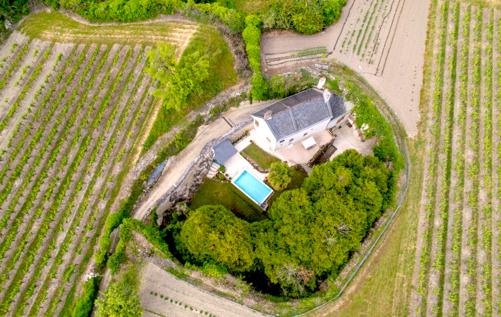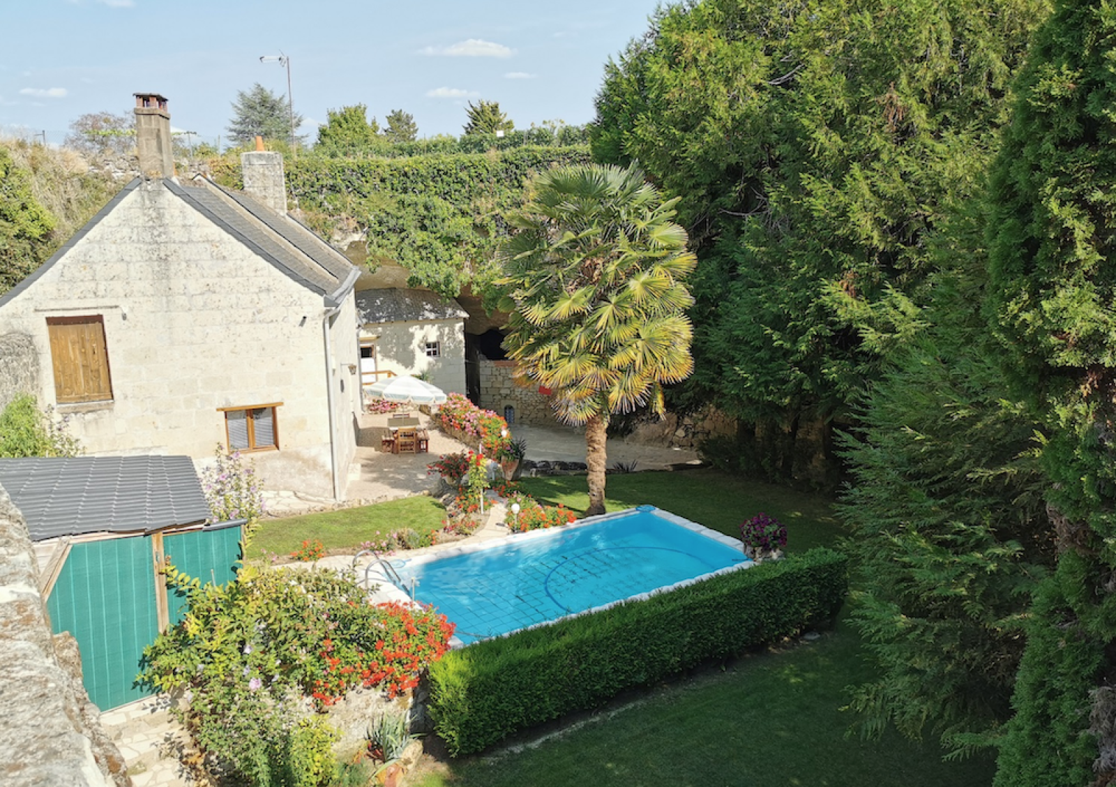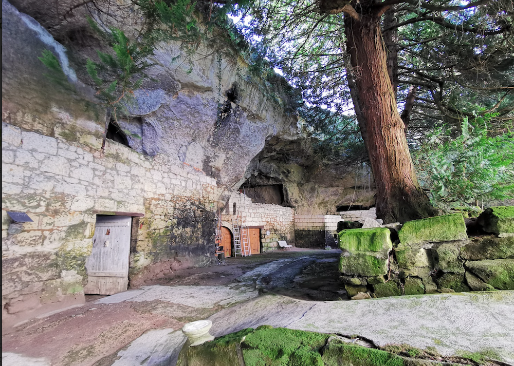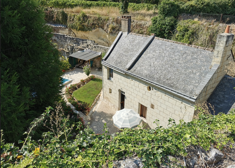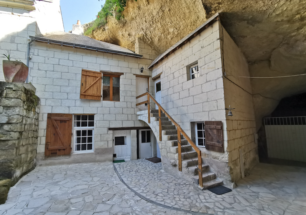 On y accède de manière singulière en suivant un chemin qui traverse une partie troglodytique de ce village typique des bords de Loire, à moins de 10 minutes de Saumur