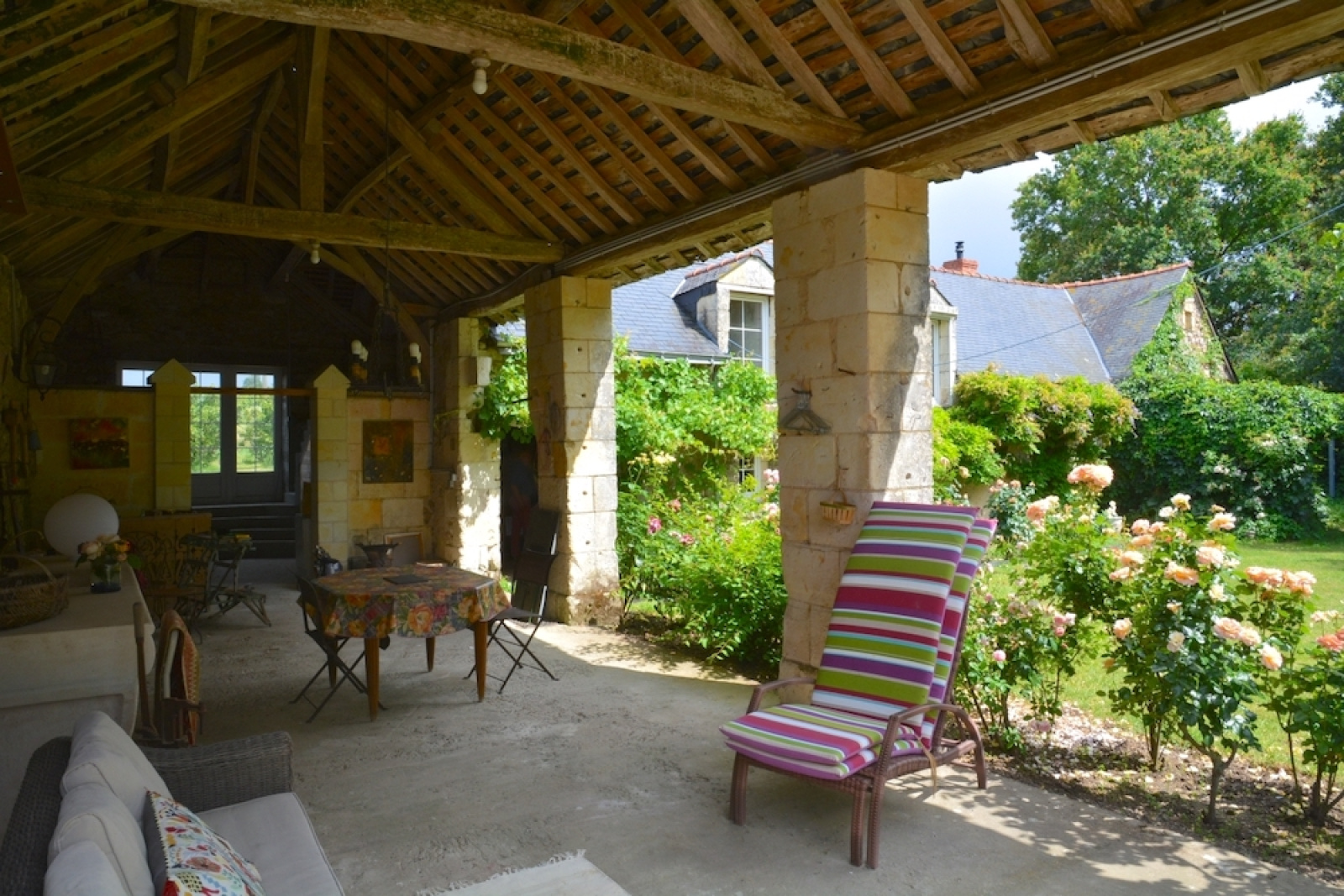 Belle grange ouverte de 10m x 4m (couverture ardoises anciennes clouées), un refuge idéal pour les repas d'été... -