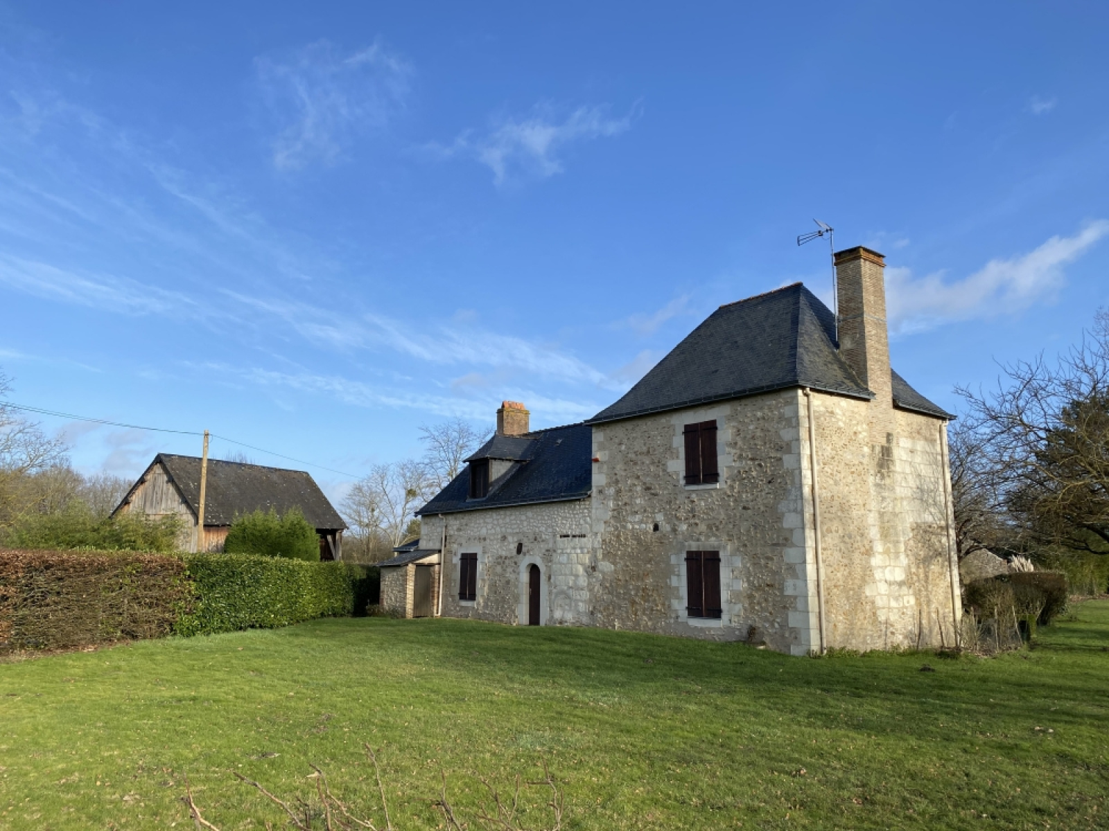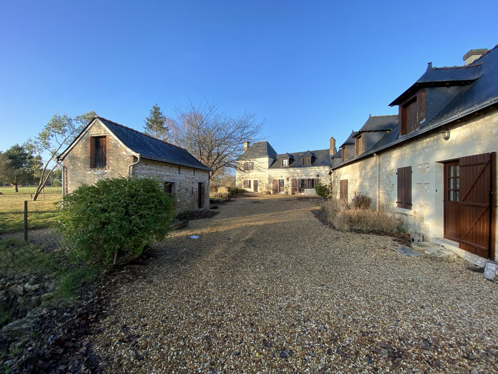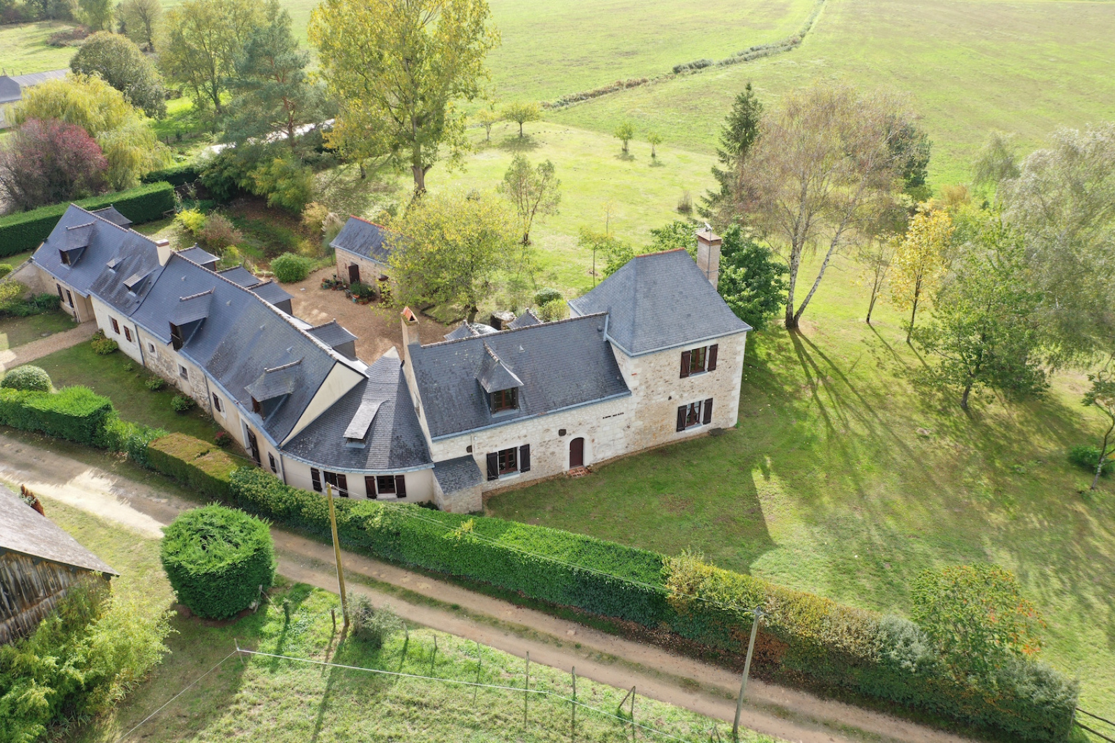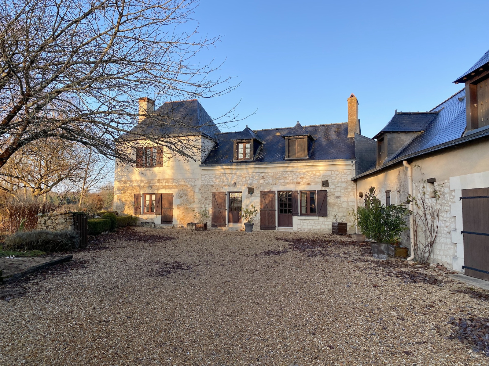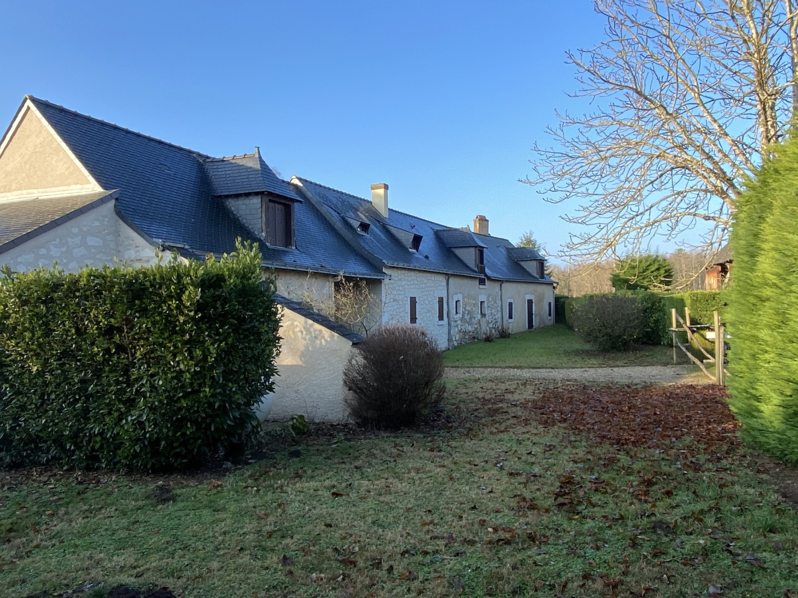 Dans la partie forestière de l'Anjou limitrophe de la Touraine, cette jolie longère en tuffeau se situe dans une vaste clairière forestière, loin des nuisances urbaines mais à moins d'une demie-heure de la gare de Saumur (25 km) et de l'autoroute A 85.