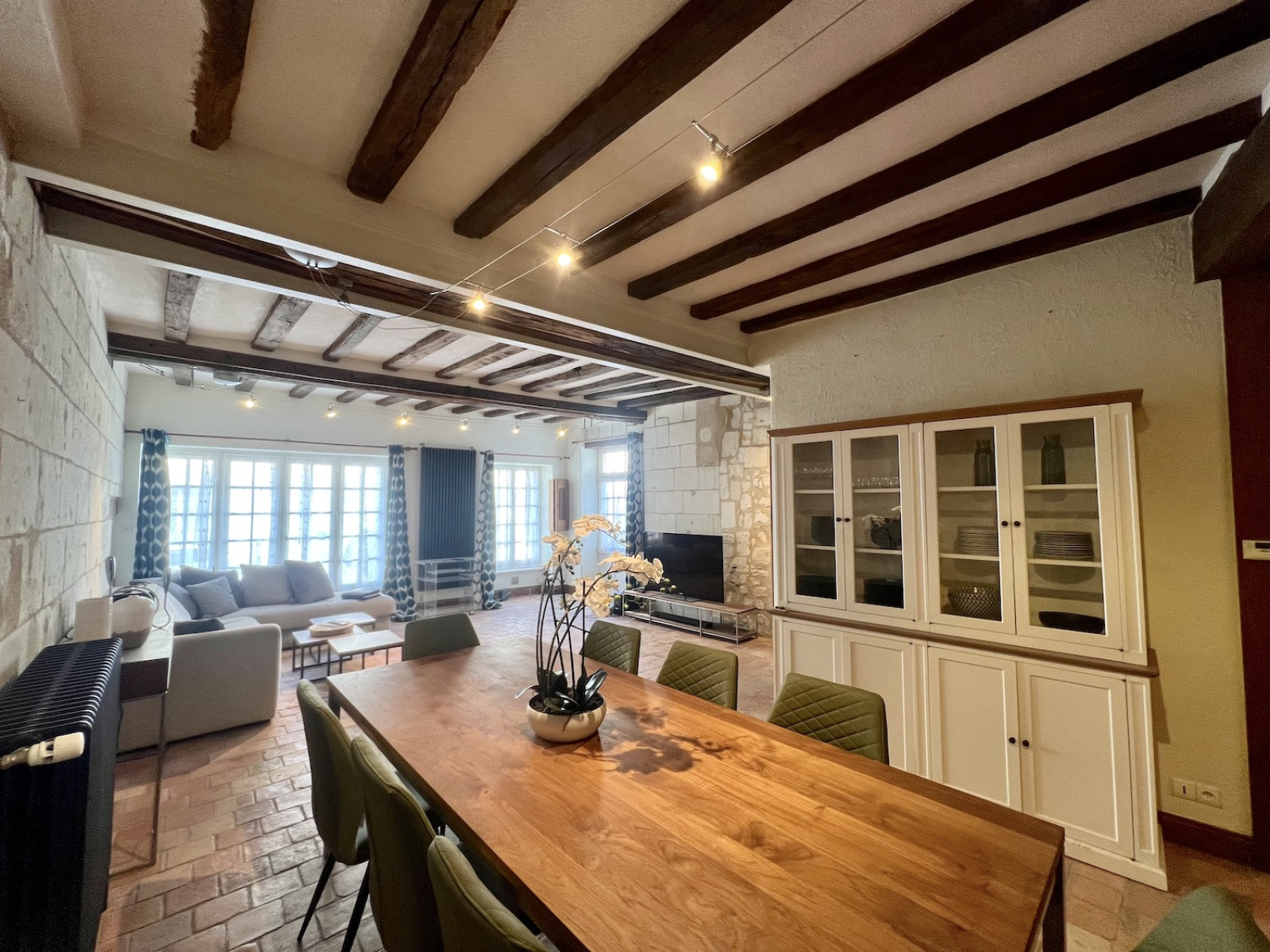 Sur une jolie Place du village de Montsoreau où la Loire est si étendue, cette maison en tuffeau de deux étages mêle charme et polyvalence pour y vivre à l’année, tout comme d’y introduire une activité, un lieu d’exposition.