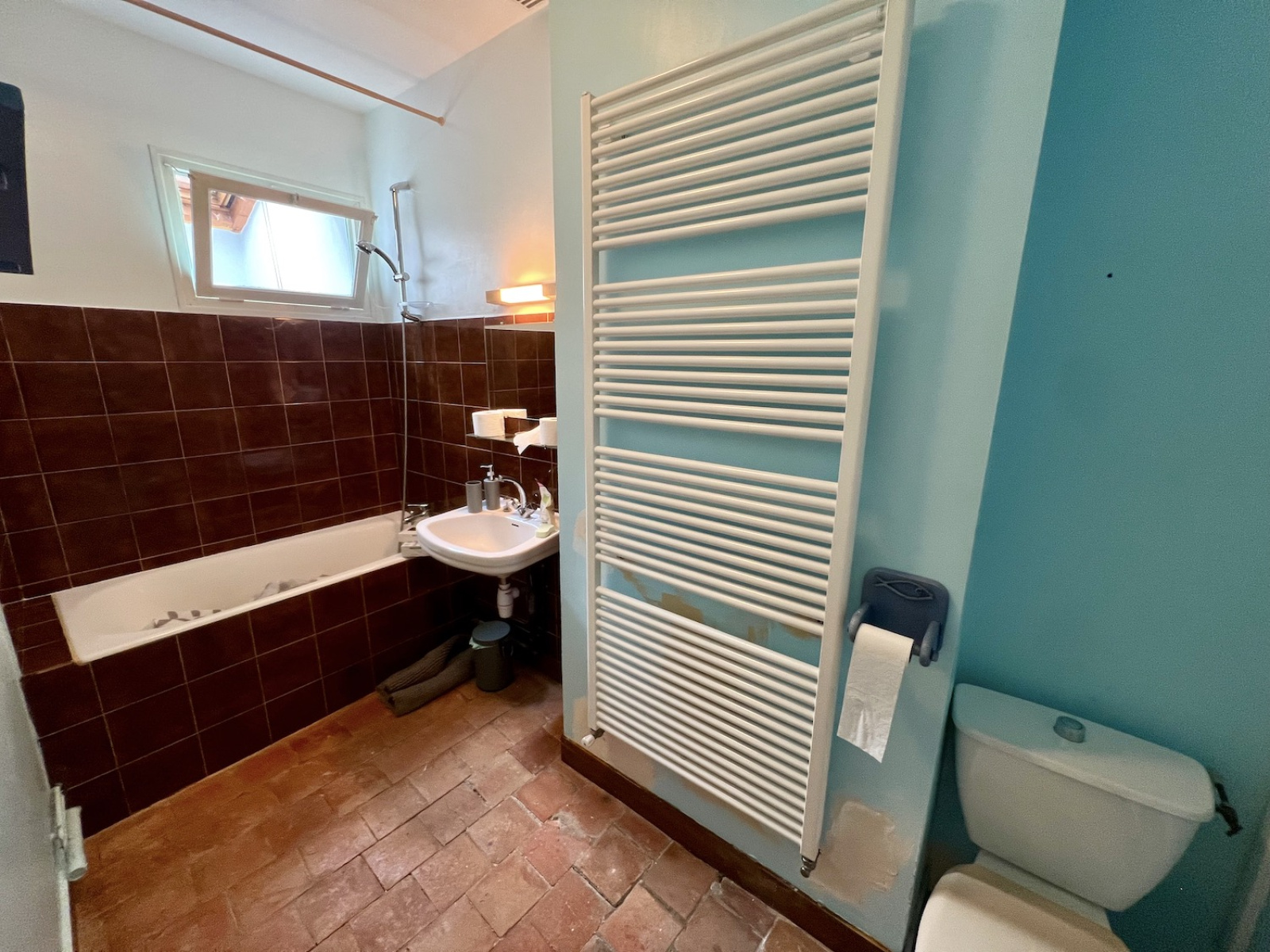 La maison donnant sur 2 rues, il y sera facile de consacrer la jolie pièce du rez-de-chaussée avec les 2 chambres de l'étage à une première partie indépendante, et ainsi isoler le second étage où se trouve un studio de 3 pièces avec terrasse pour une seconde partie ; l'ensemble de la maison est équipée d'une pompe à chaleur dernière génération accordant un bon classement énergie en C !