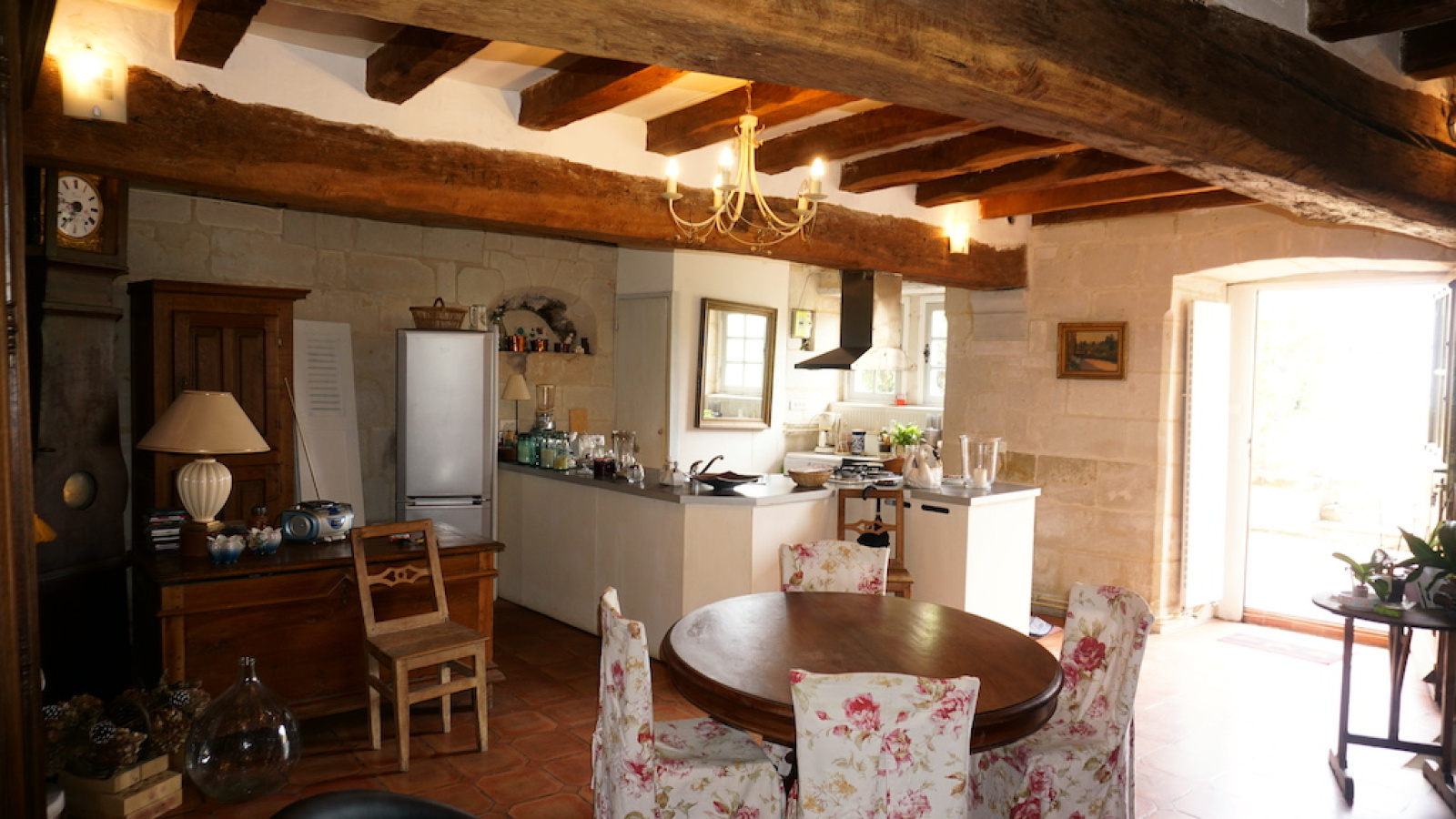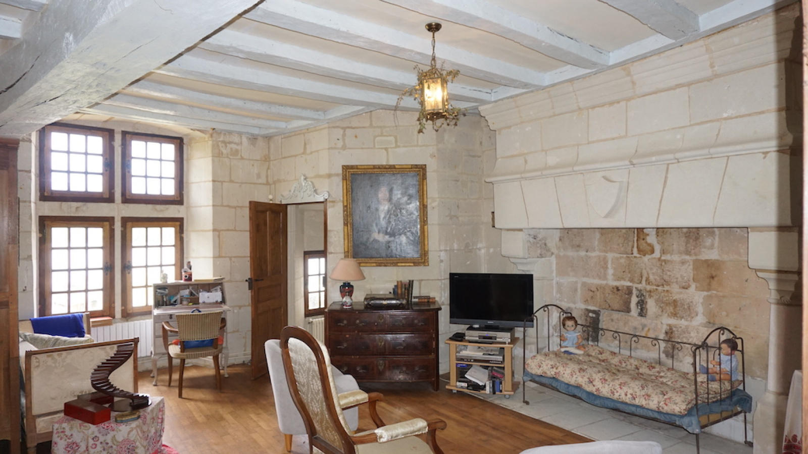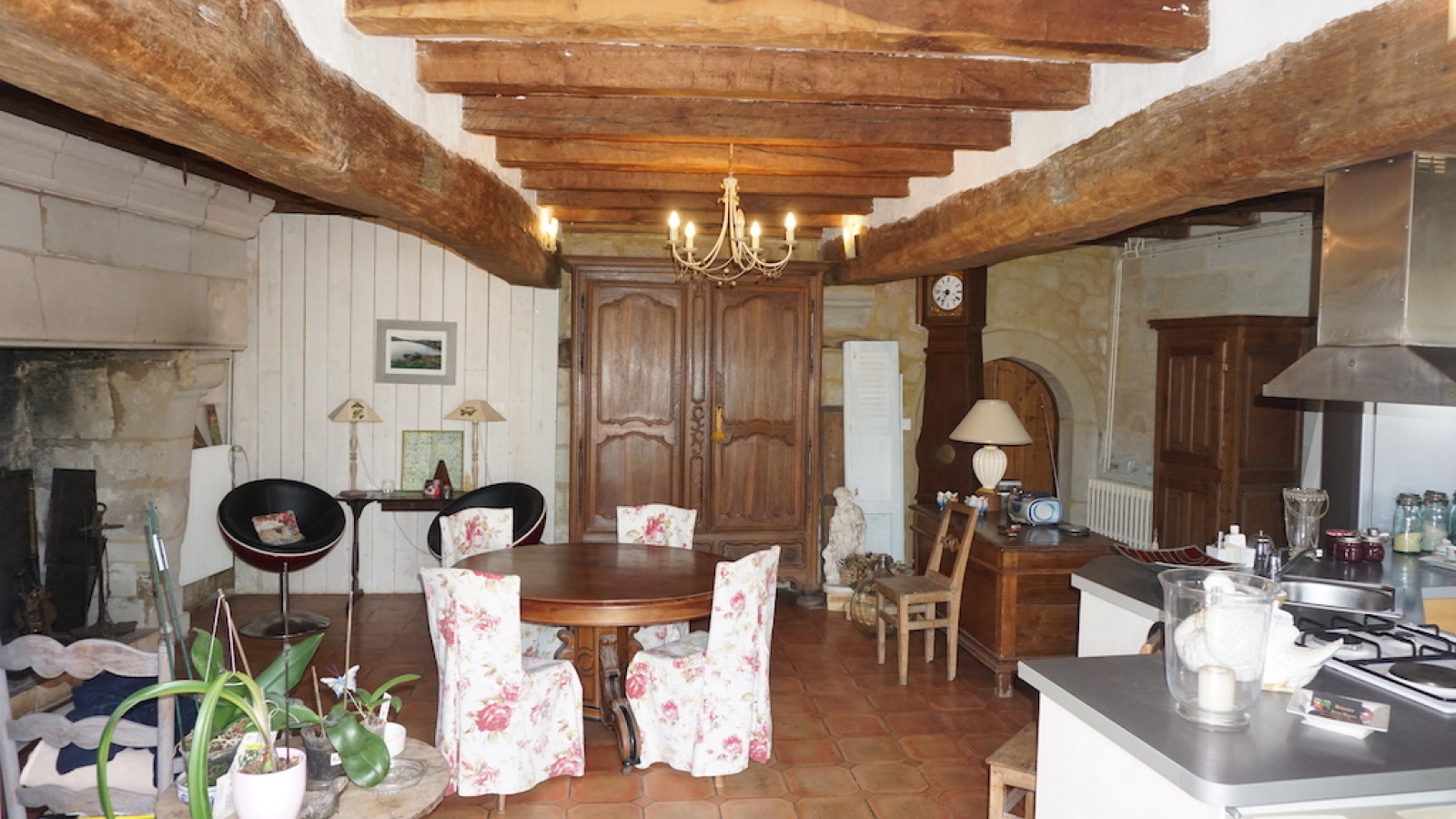 Les cheminées sont monumentales et les fenêtres à meneaux éclairent chaque pièce, quant à la charpente à sabot, elle affiche la croix de St André...