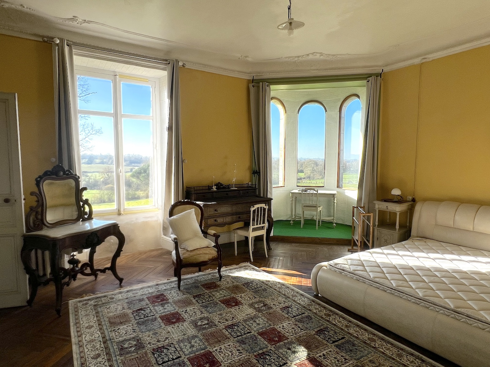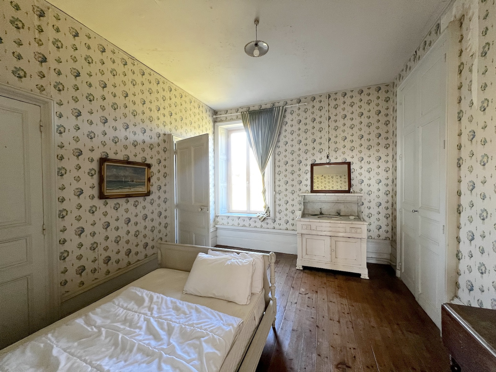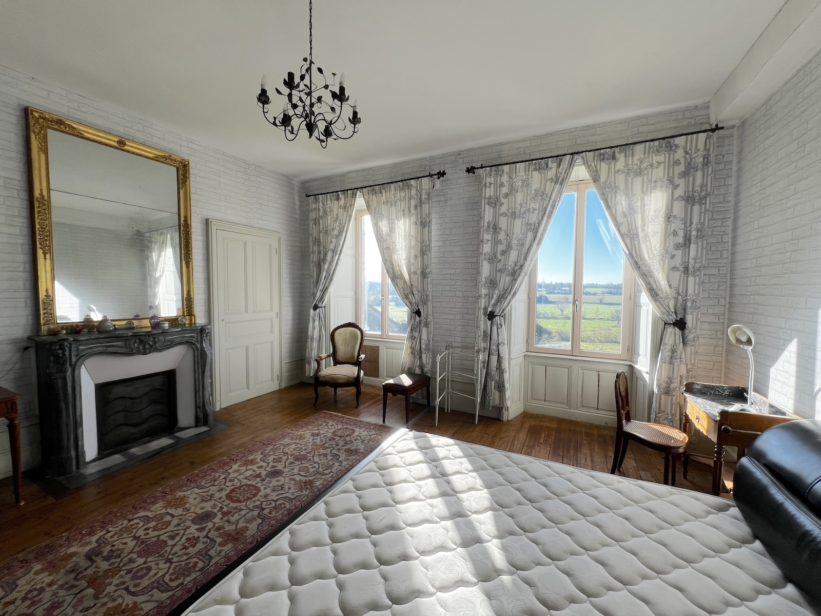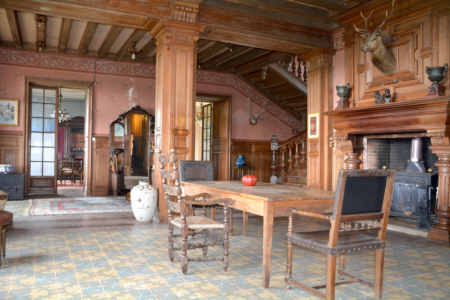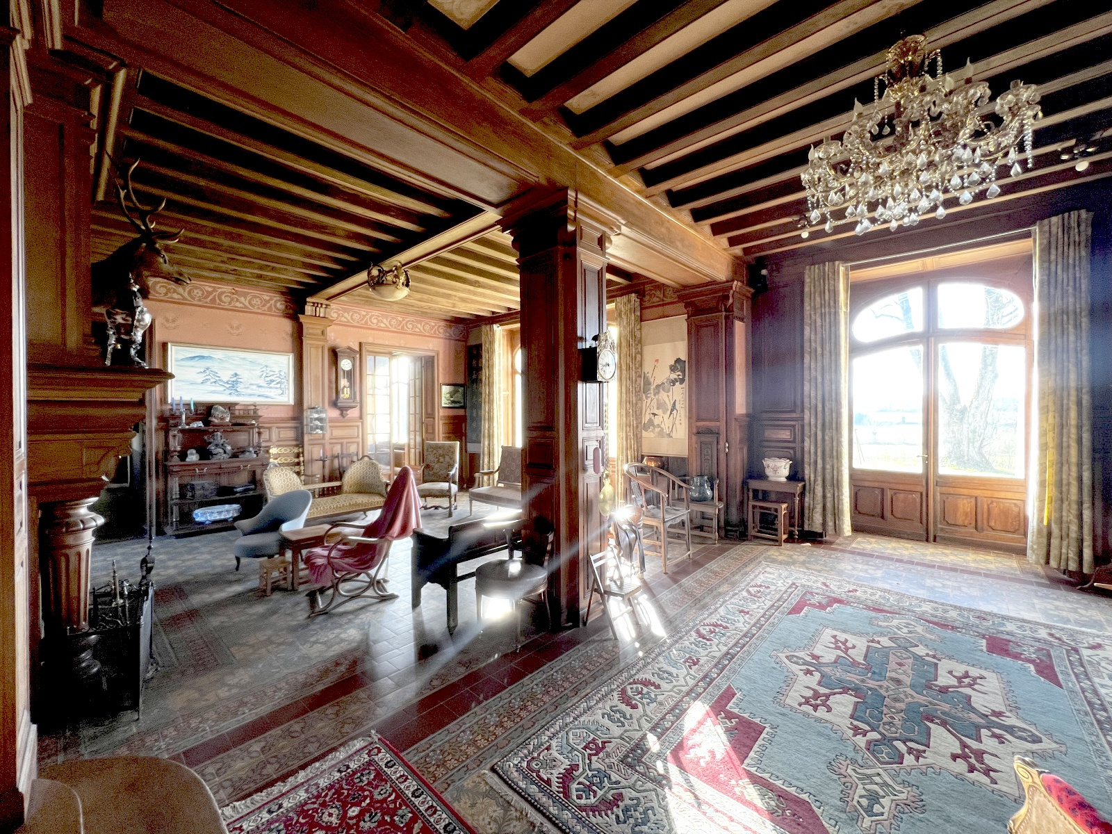 Les 15 pièces de ce joli chateau possèdent des intérieurs encore intacts, des traces de vie des grandes demeures au 19e siècle ; il faudra prévoir une rénovation, compléter le confort et la déco, mais attention à ne pas faire disparaitre le parfum suranné des ambiances de boiseries, des vieux décors.. et des rêveries que provoquent les lignes originales de ses grandes fenêtres.