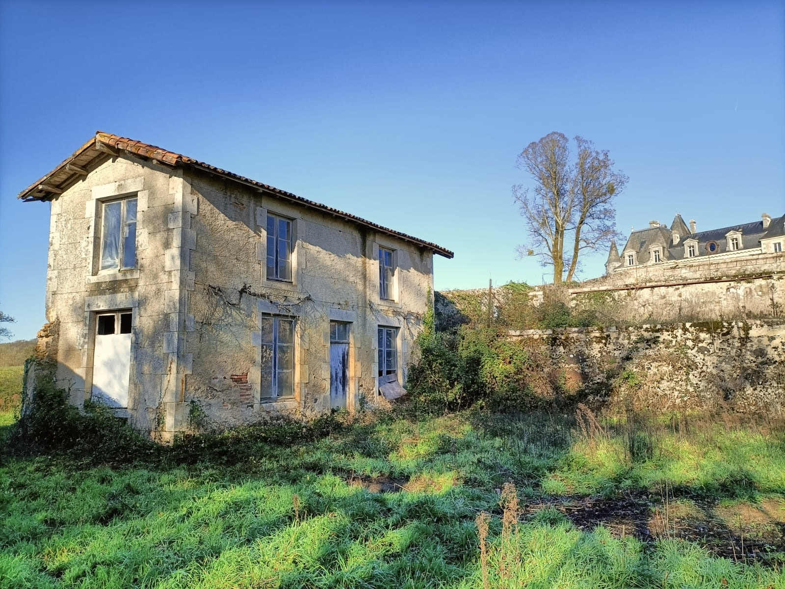 Potager clos de murs avec avec ancienne serre et petite maison