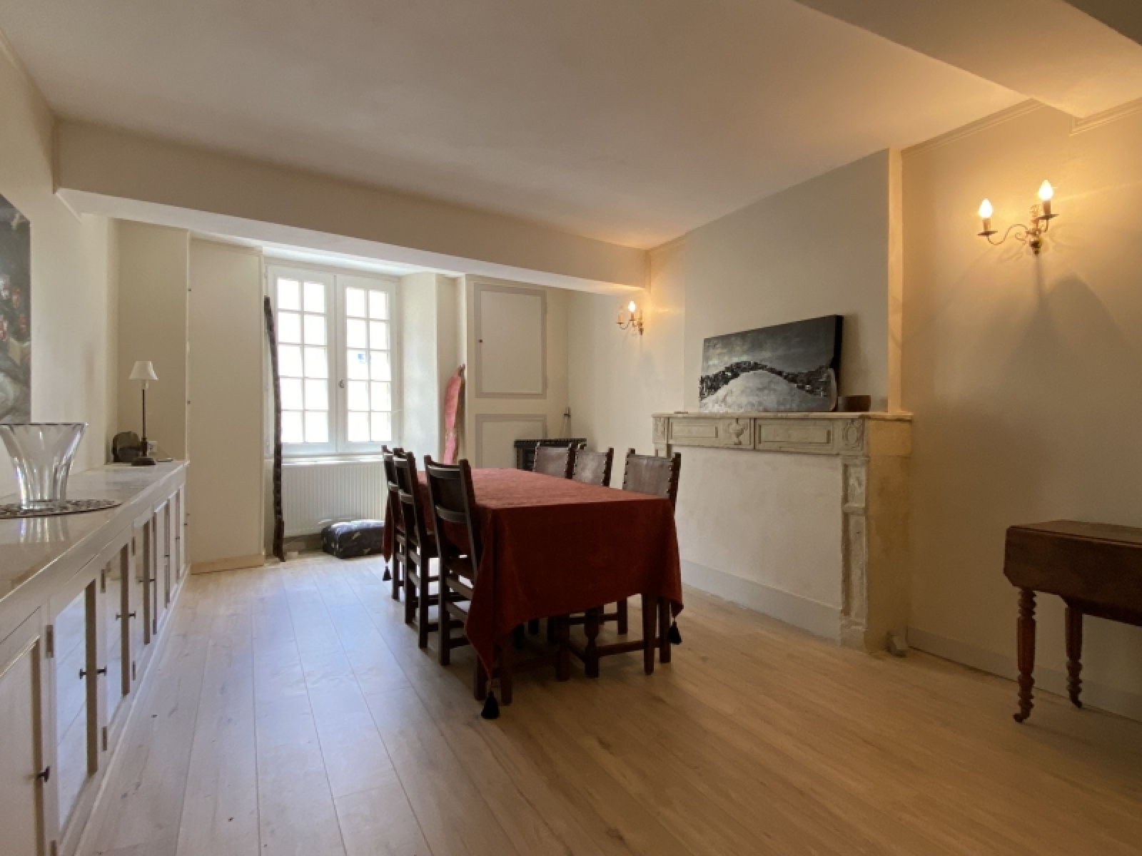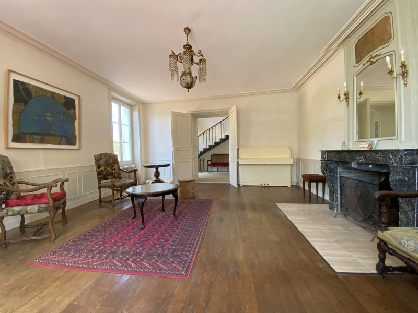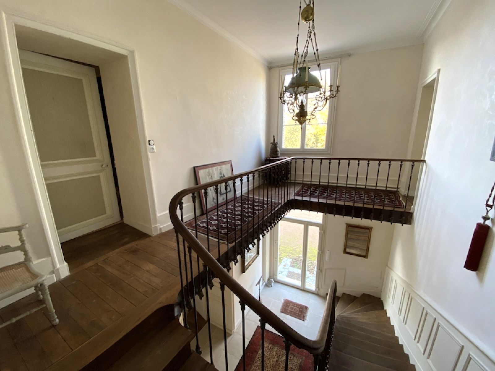 L'entrée principale possède l'escalier qui sied à toute maison de caractère, et dessert un salon sur parquet, salle à manger avec cheminée, cuisine avec cheminée insert, une entrée annexe ou se trouve un escalier secondaire (pour le service autrefois...), une pièce (ancienne cuisine), buanderie chaufferie - avec 2 caves voûtées en s/sol.